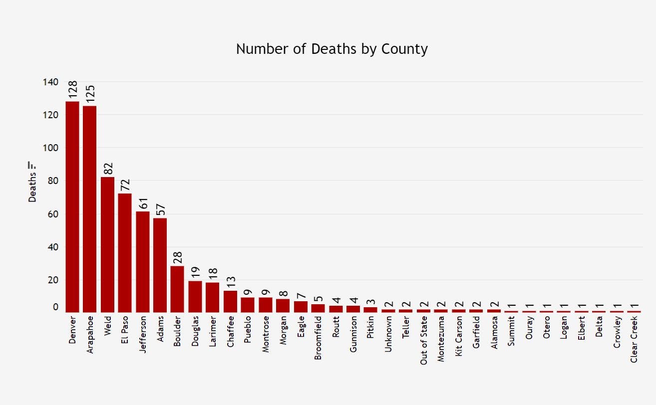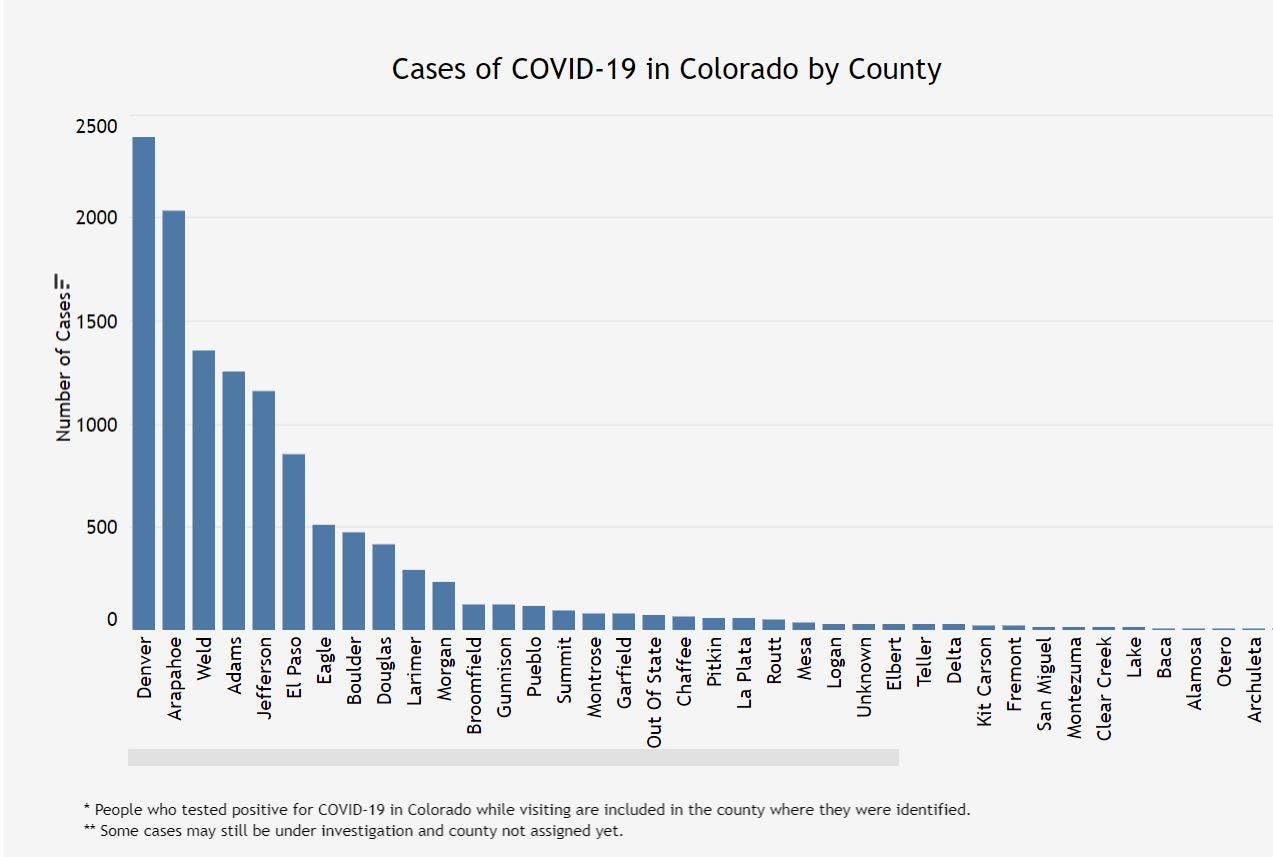 Here's the latest breakdown of cases and deaths in each Colorado county.