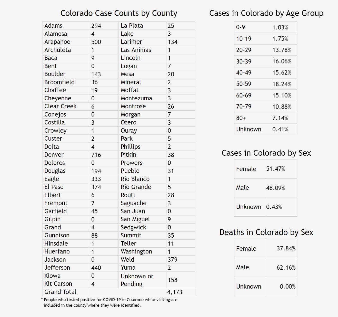 Colorado Coronavirus Cases By County: Friday, April 3
