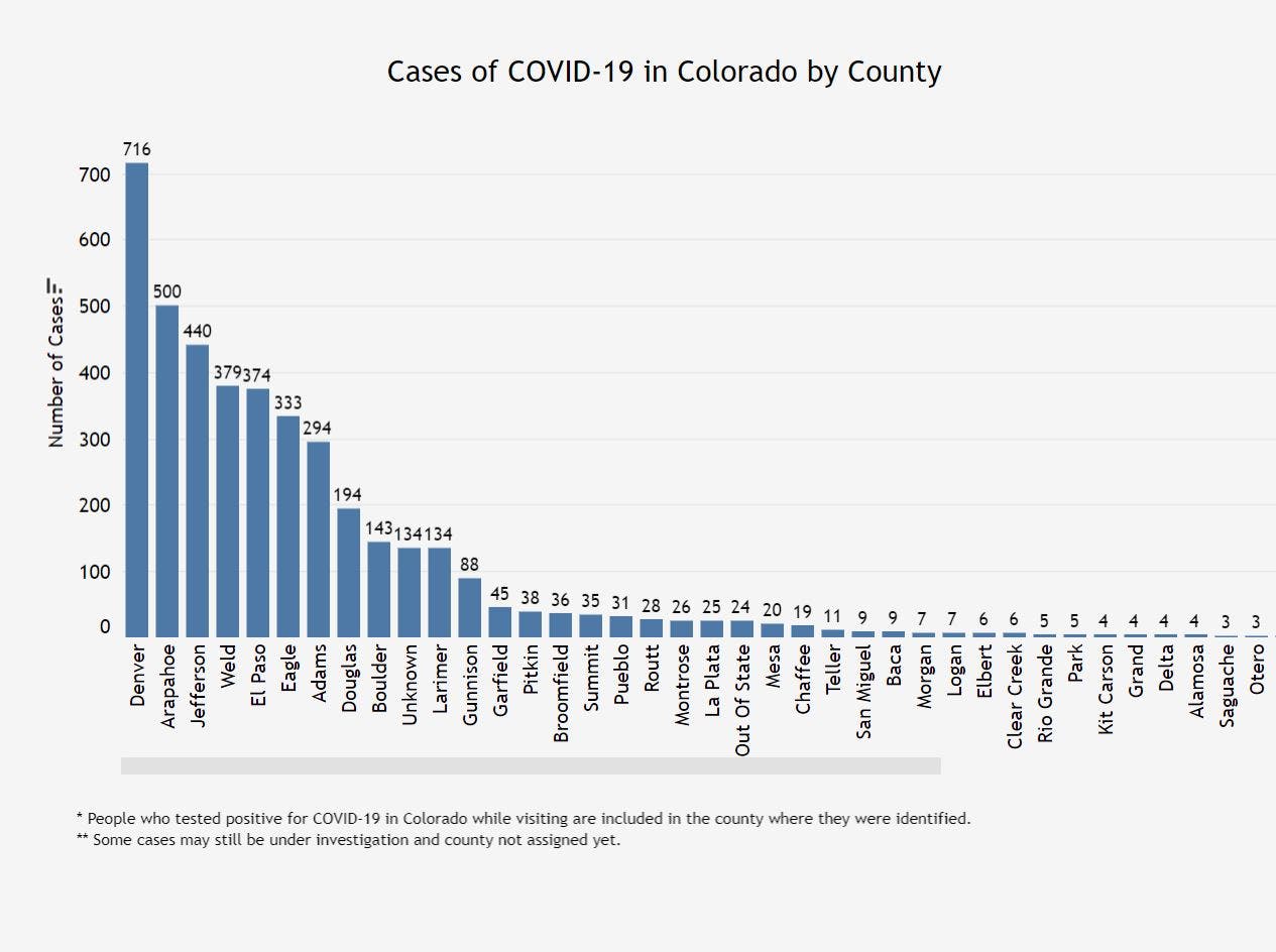 Here's a breakdown of cases and deaths in each Colorado county.