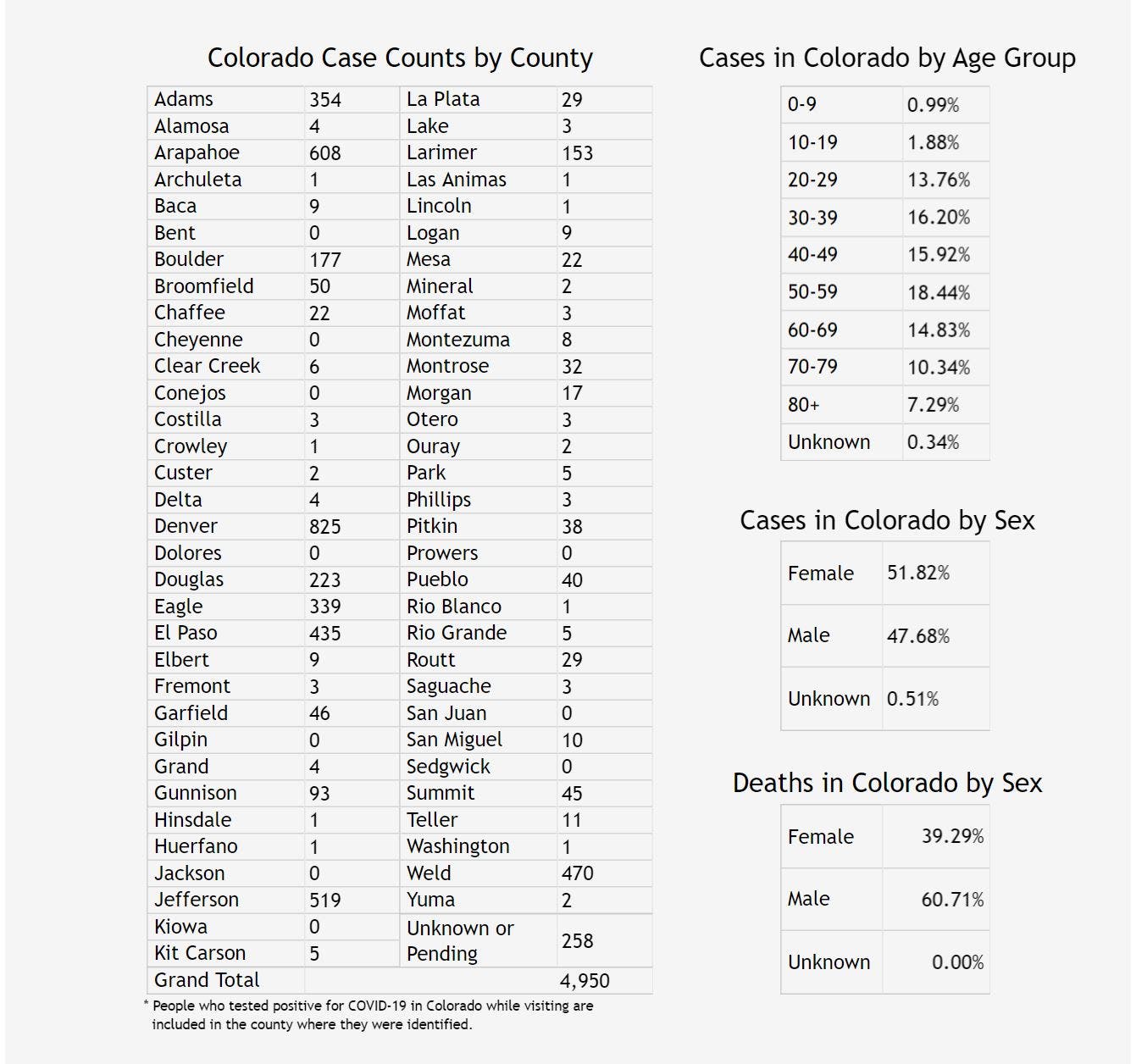 Colorado Coronavirus Cases By County: Sunday, April 5