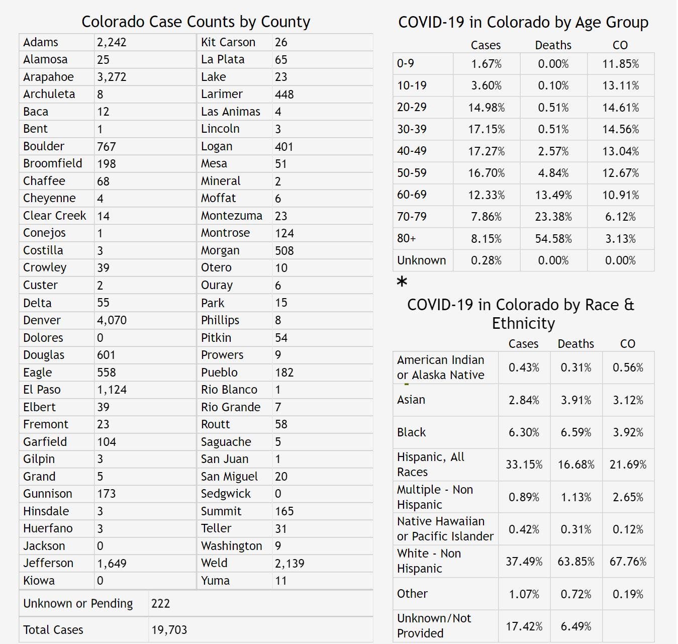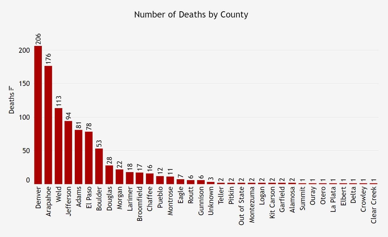 Here's the latest breakdown of cases and deaths in each Colorado county.