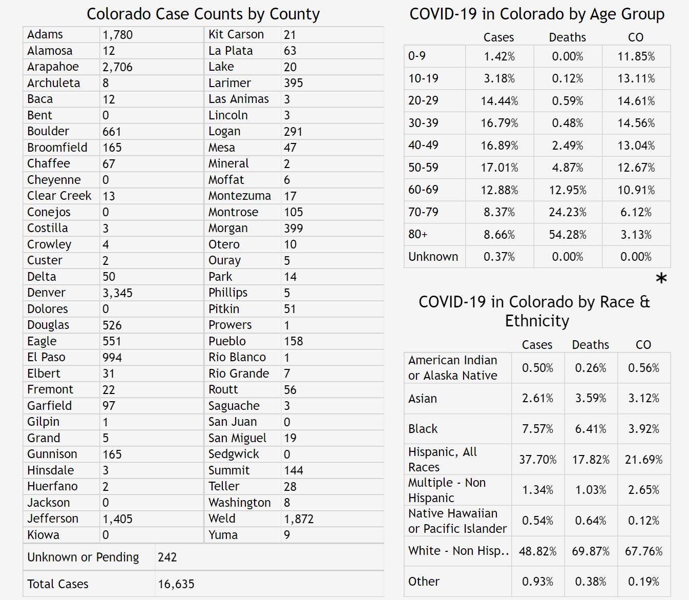 Colorado Coronavirus Cases By County: Sunday May 3