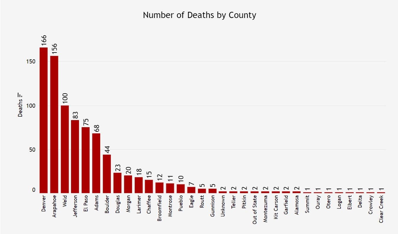 Here's the latest breakdown of cases and deaths in each Colorado county.
