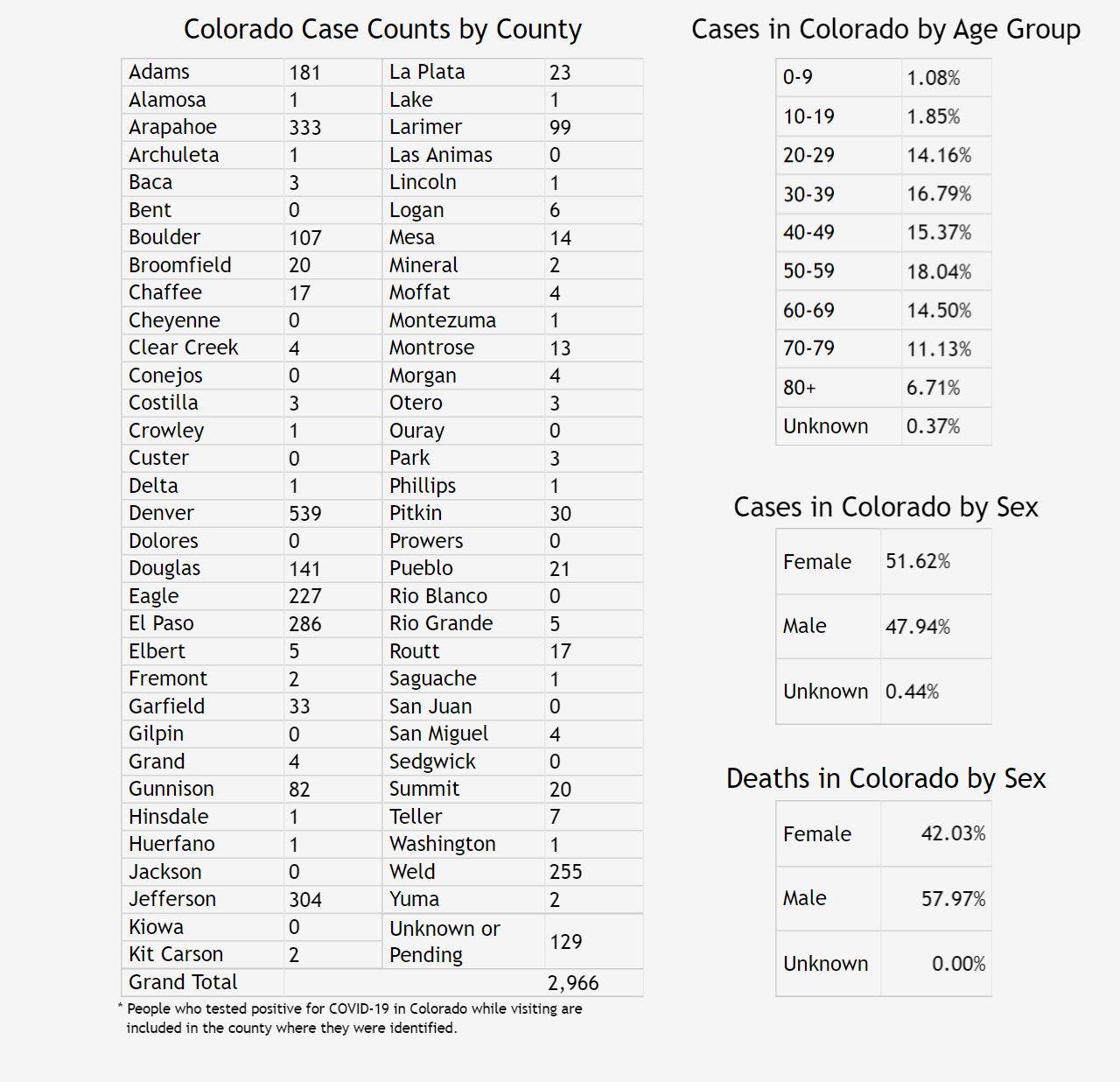 Colorado Coronavirus Cases By County: Tuesday, March 31