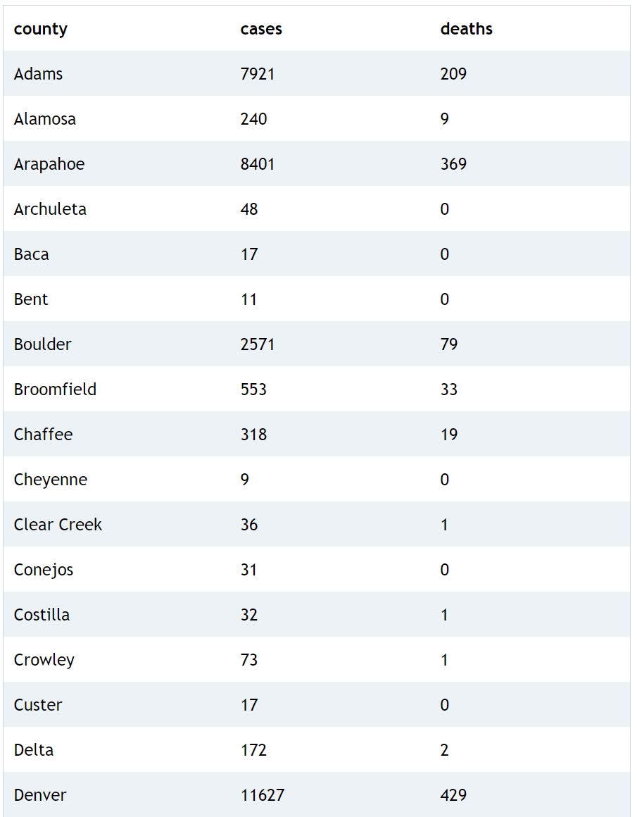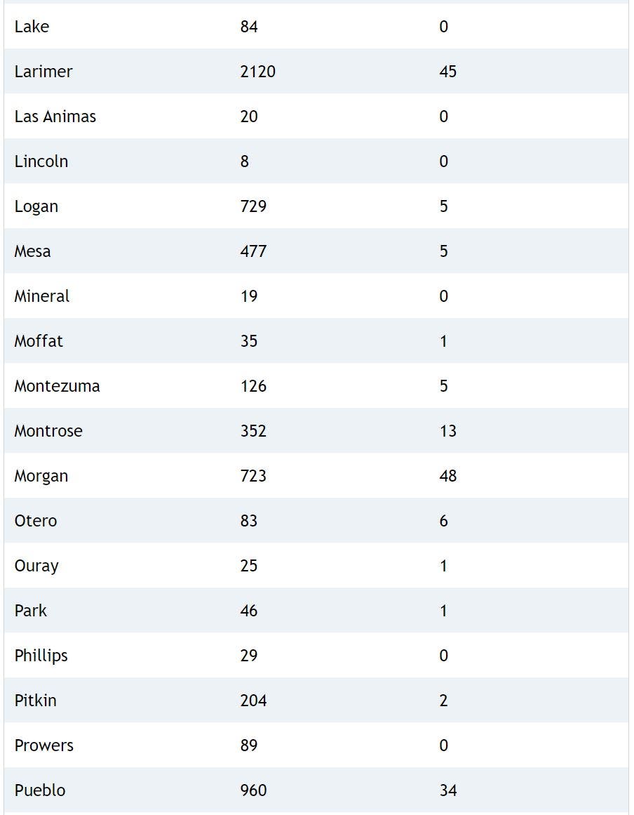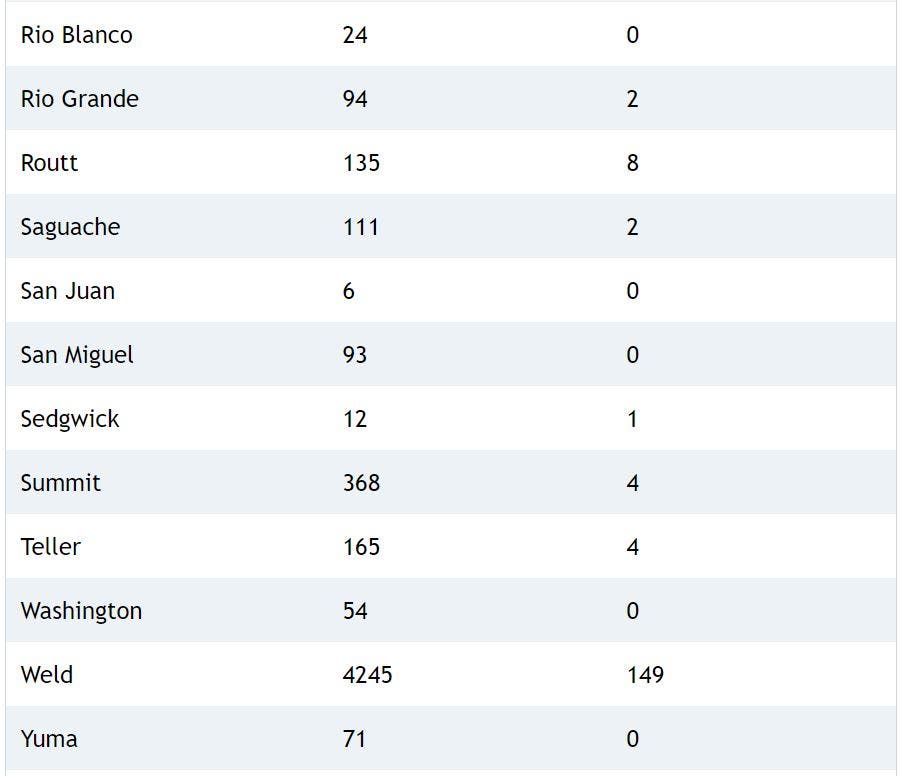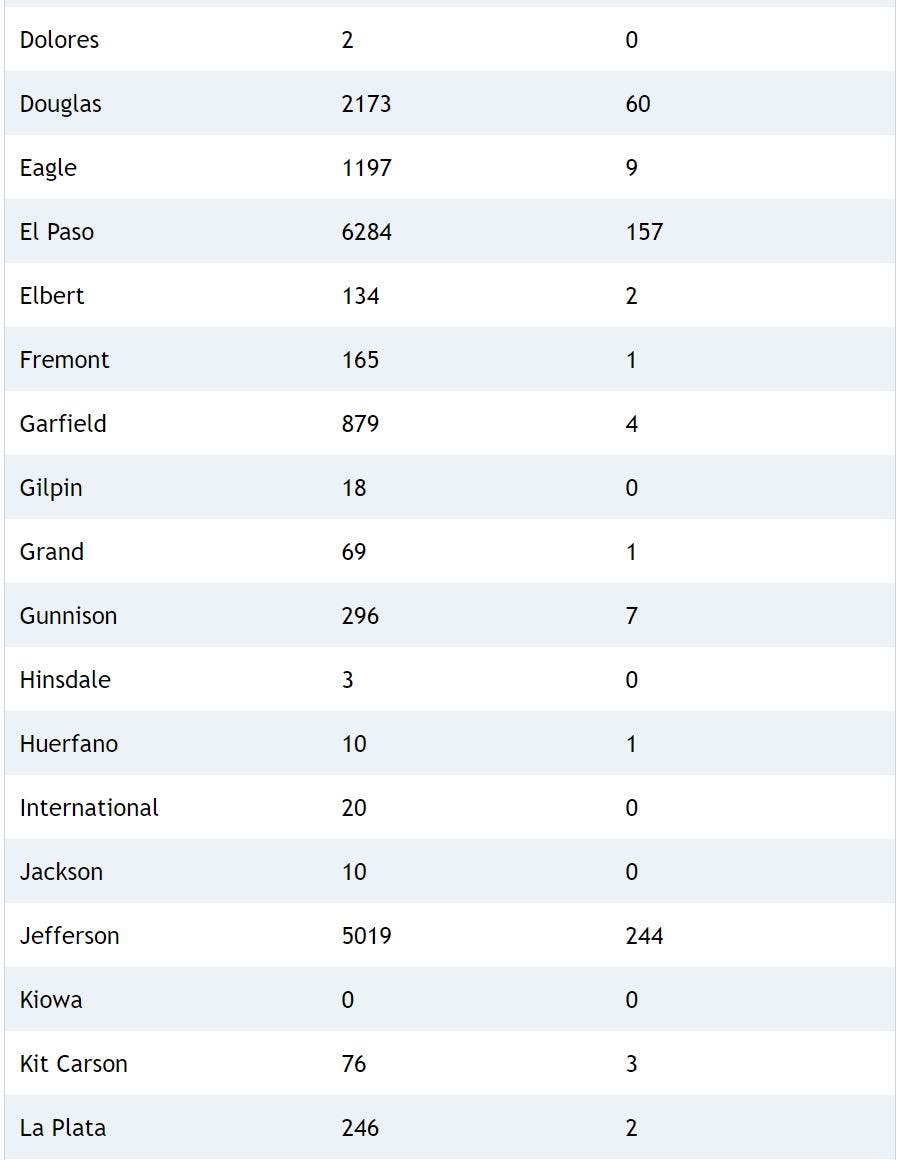 Coronavirus case counts are down in many Colorado counties, health officials confirmed.
