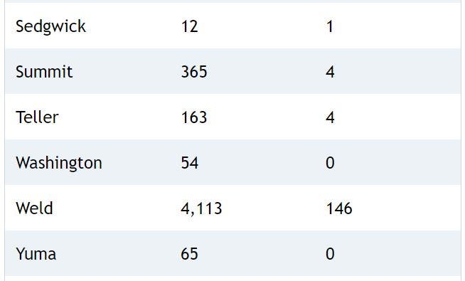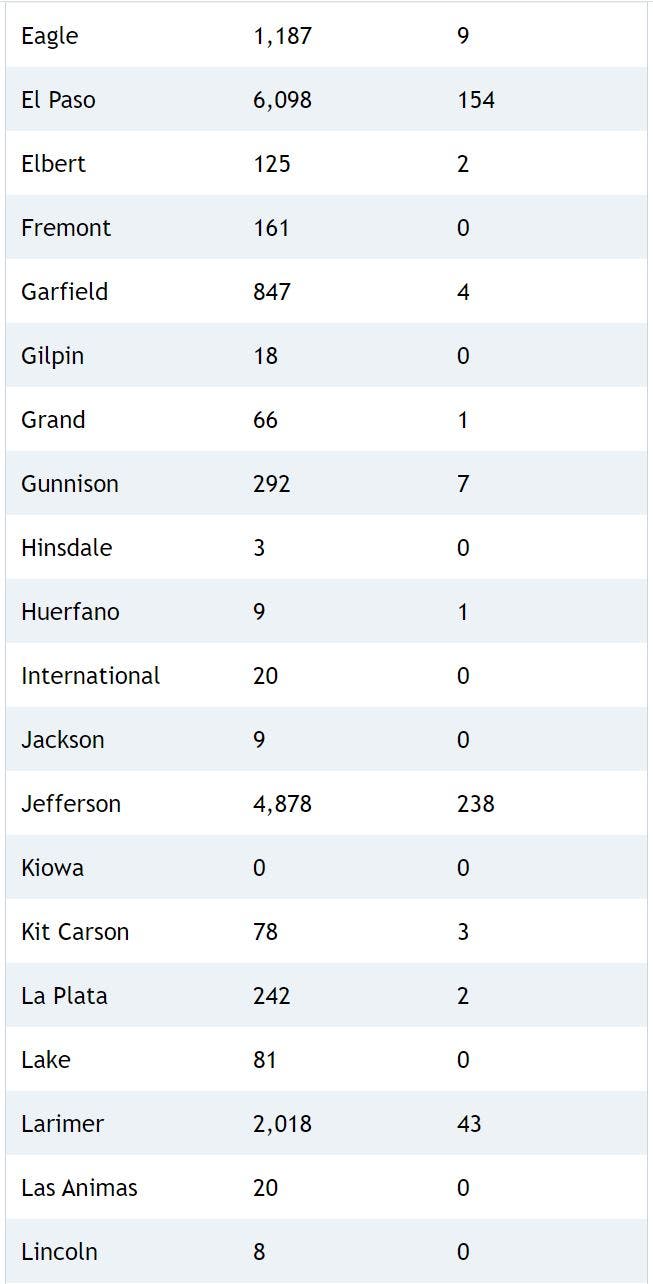 Coronavirus case counts are down in many Colorado counties, health officials confirmed.