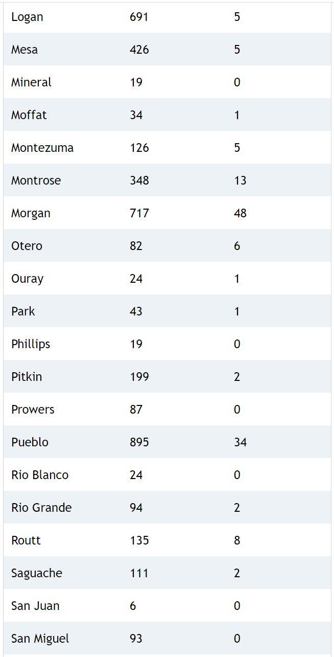 Here's a breakdown of cases and deaths in each county: