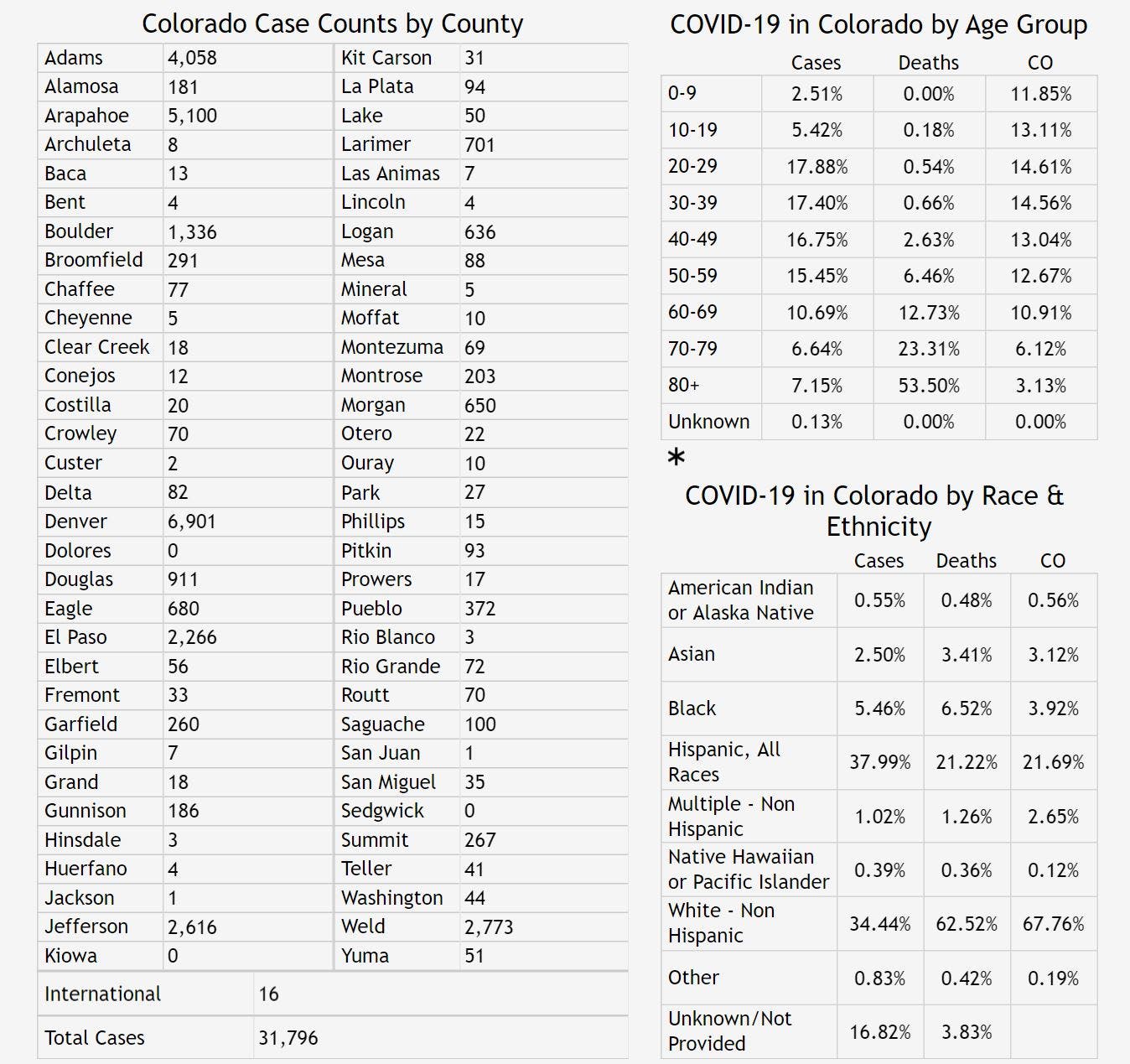 Here's the latest breakdown of cases and deaths in each Colorado county.