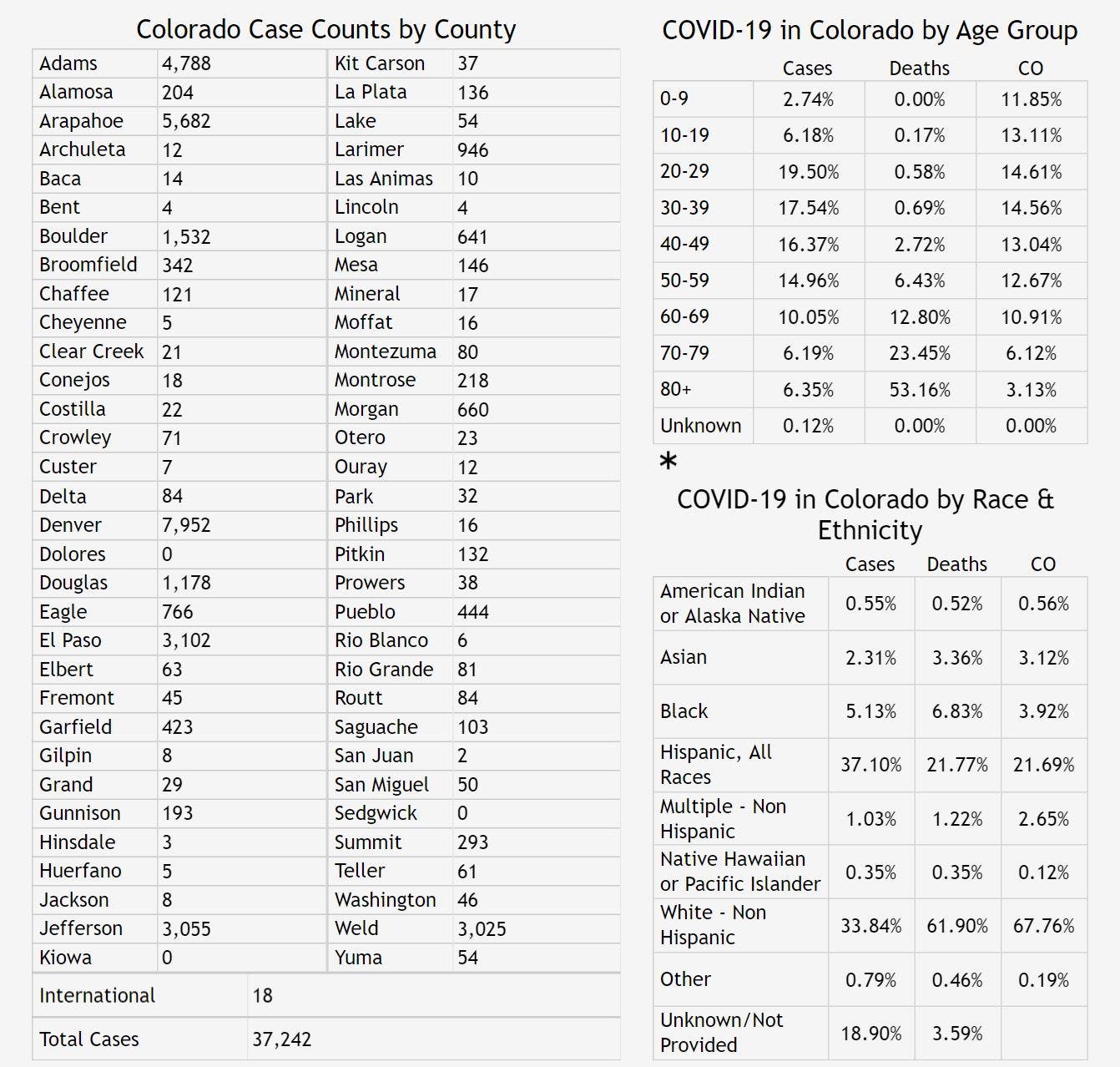 Since Saturday, 651 new cases of the coronavirus have been reported in Colorado, according to public health data. As of Monday, 37,242 people had been infected with the coronavirus in the state among 401,942 people who have been tested since the outbreak began, health officials confirmed. Around 5,941 people have been hospitalized, and the death toll has reached 1,589.