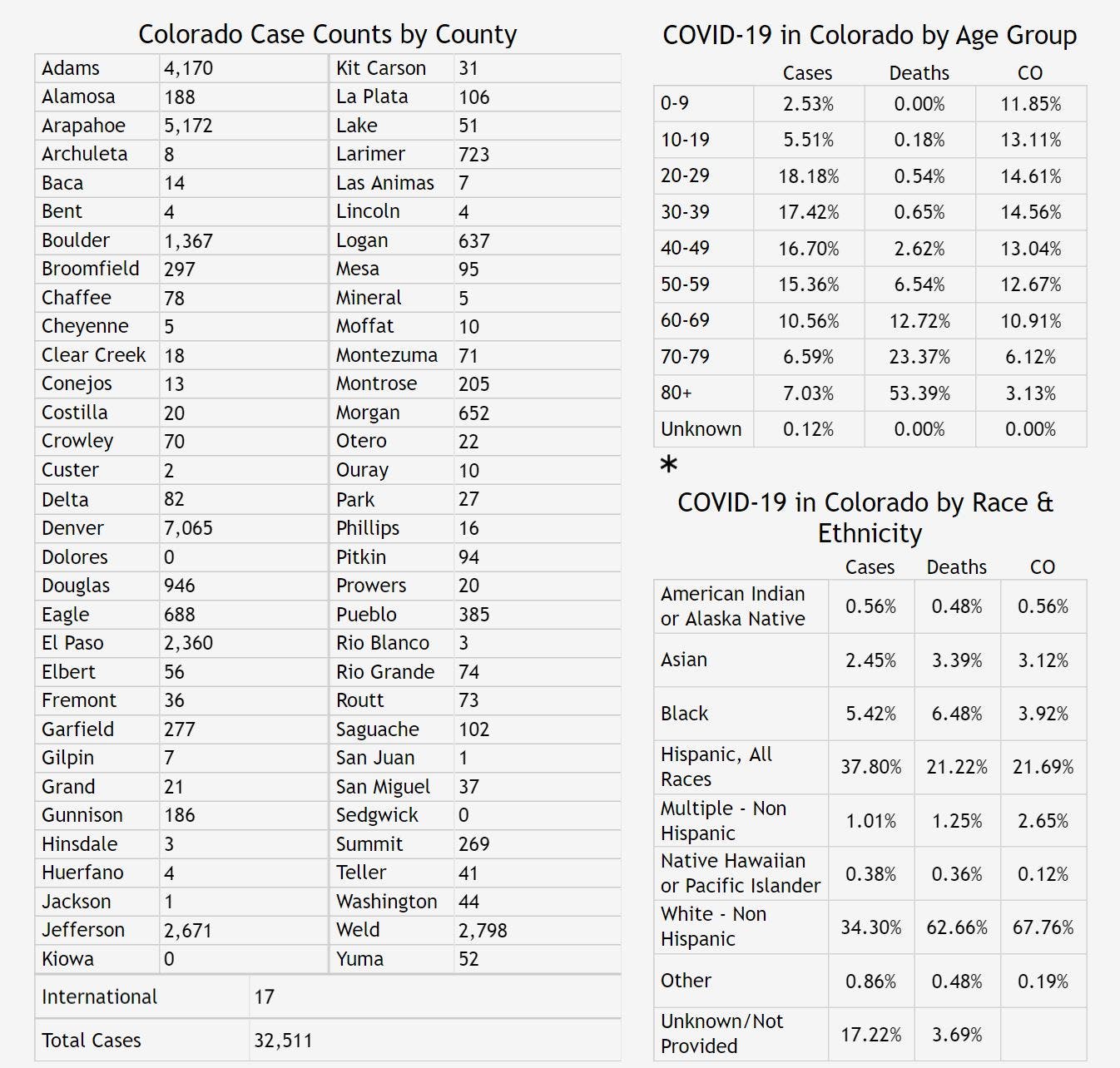 Here's the latest breakdown of cases and deaths in each Colorado county.