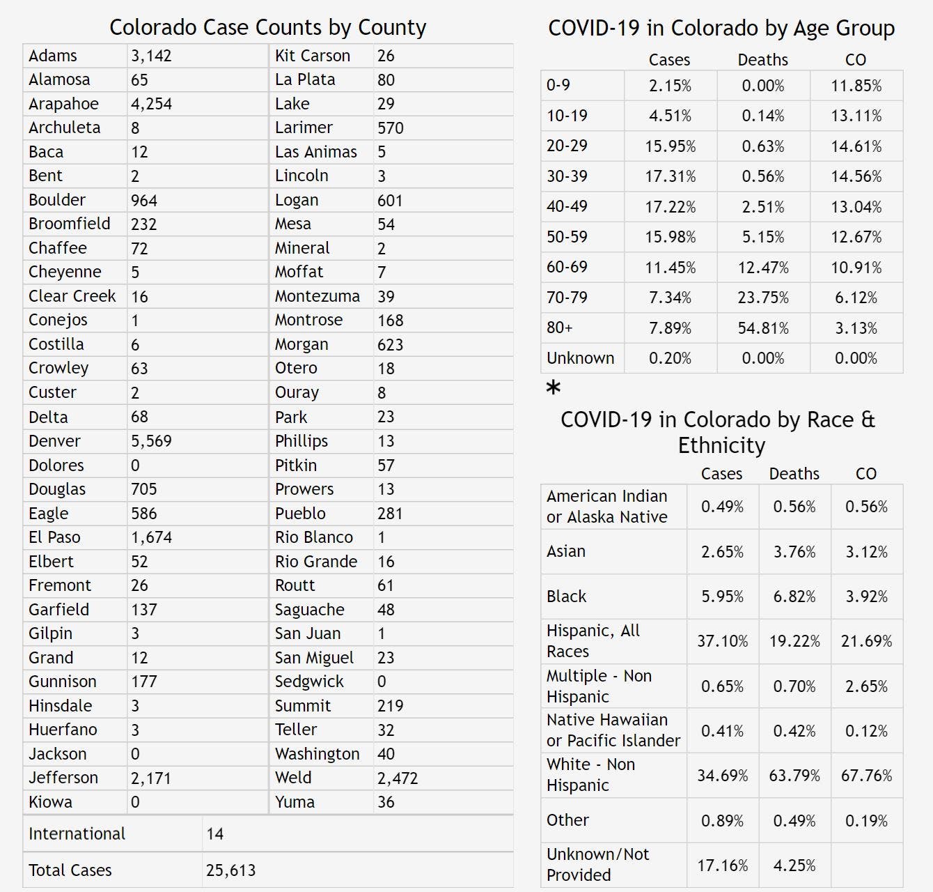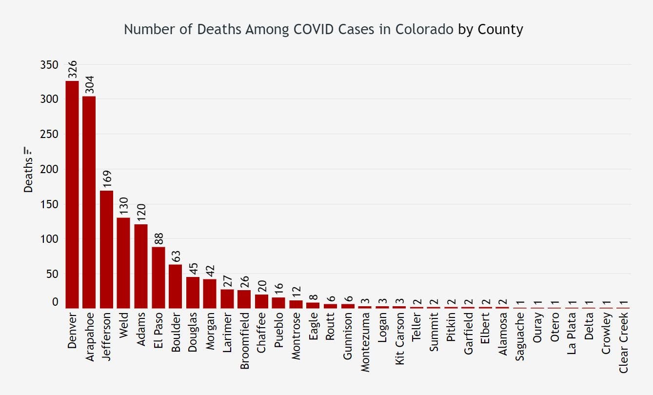 Here's the latest breakdown of cases and deaths in each Colorado county.