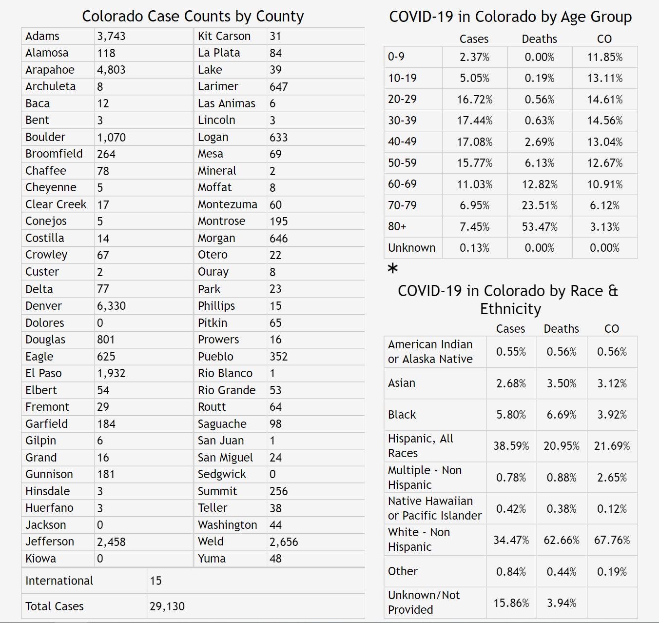 Here's the latest breakdown of cases and deaths in each Colorado county.