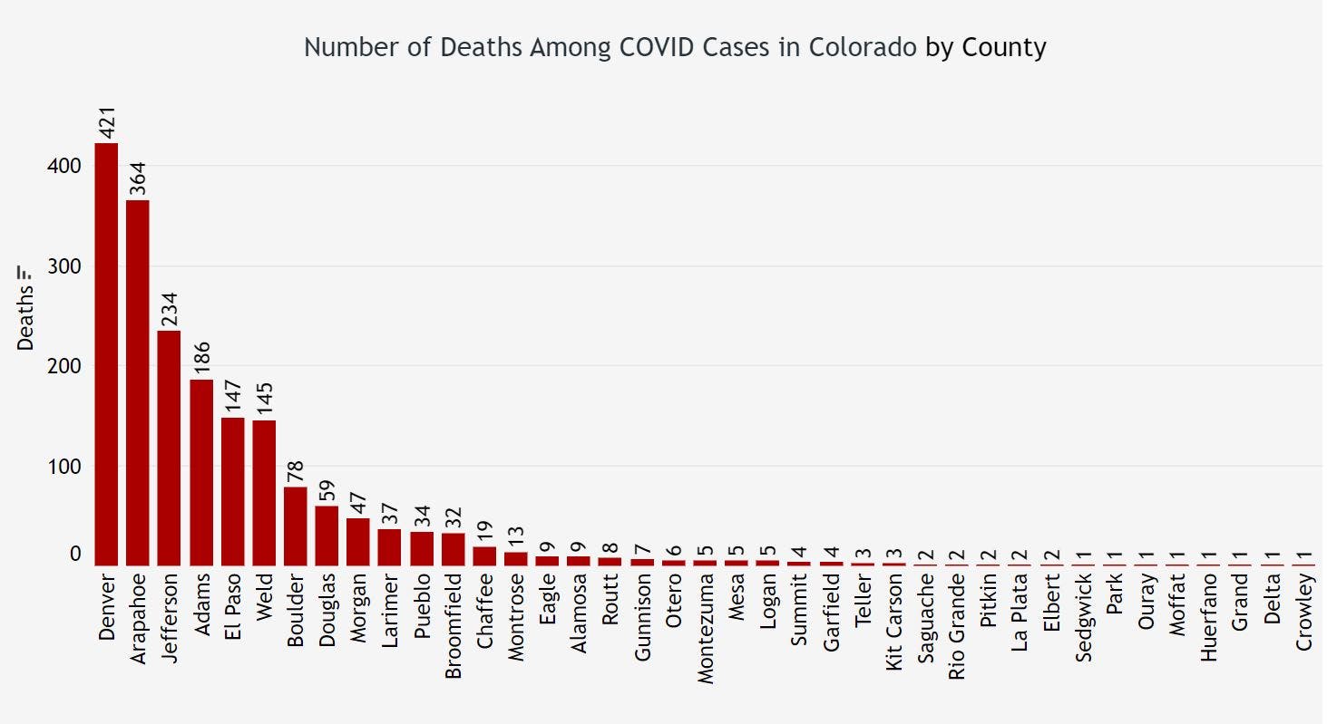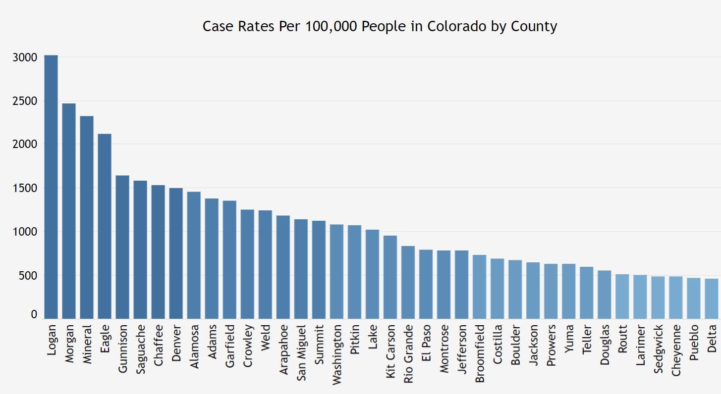 Coronavirus case counts are down in many Colorado counties, health officials confirmed.