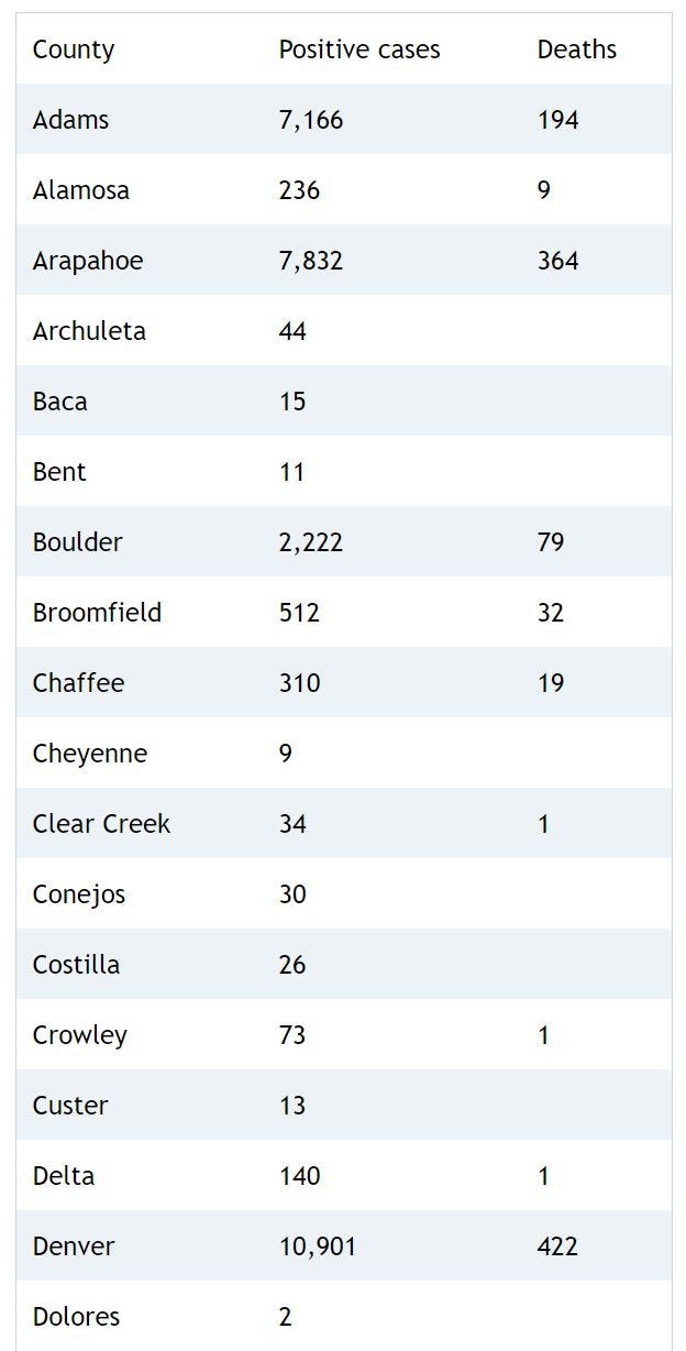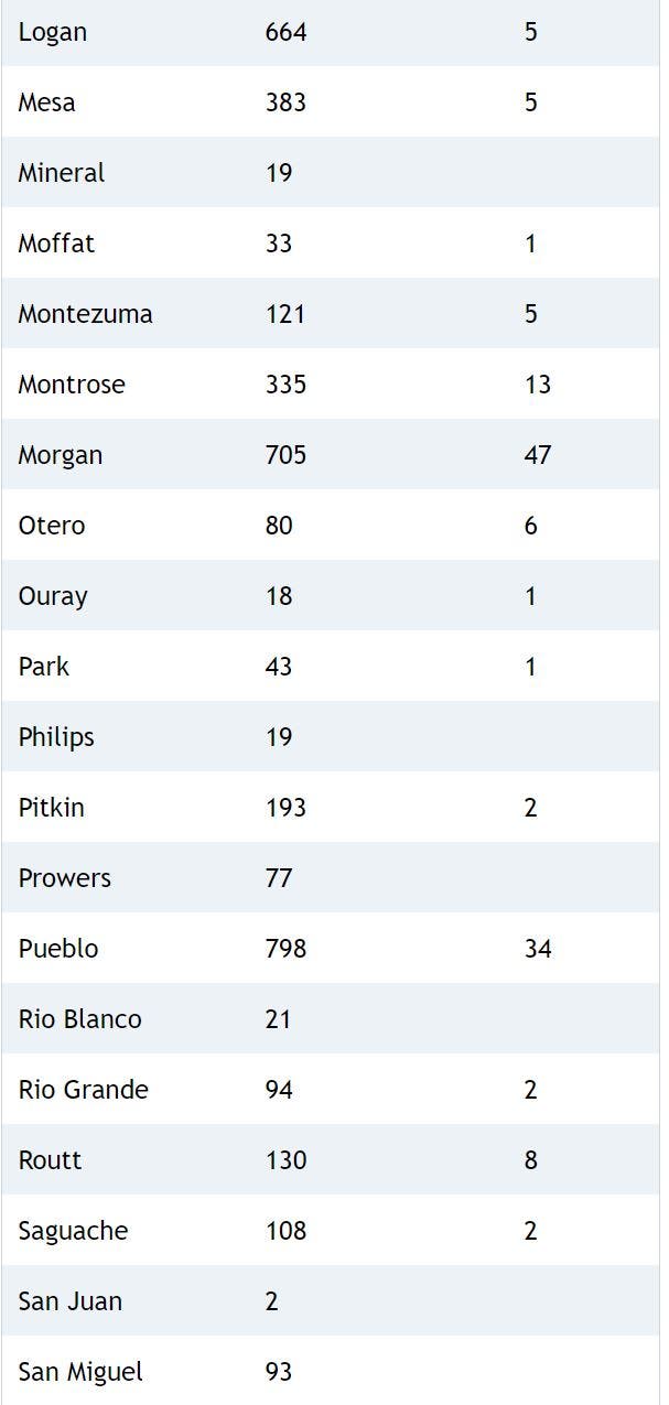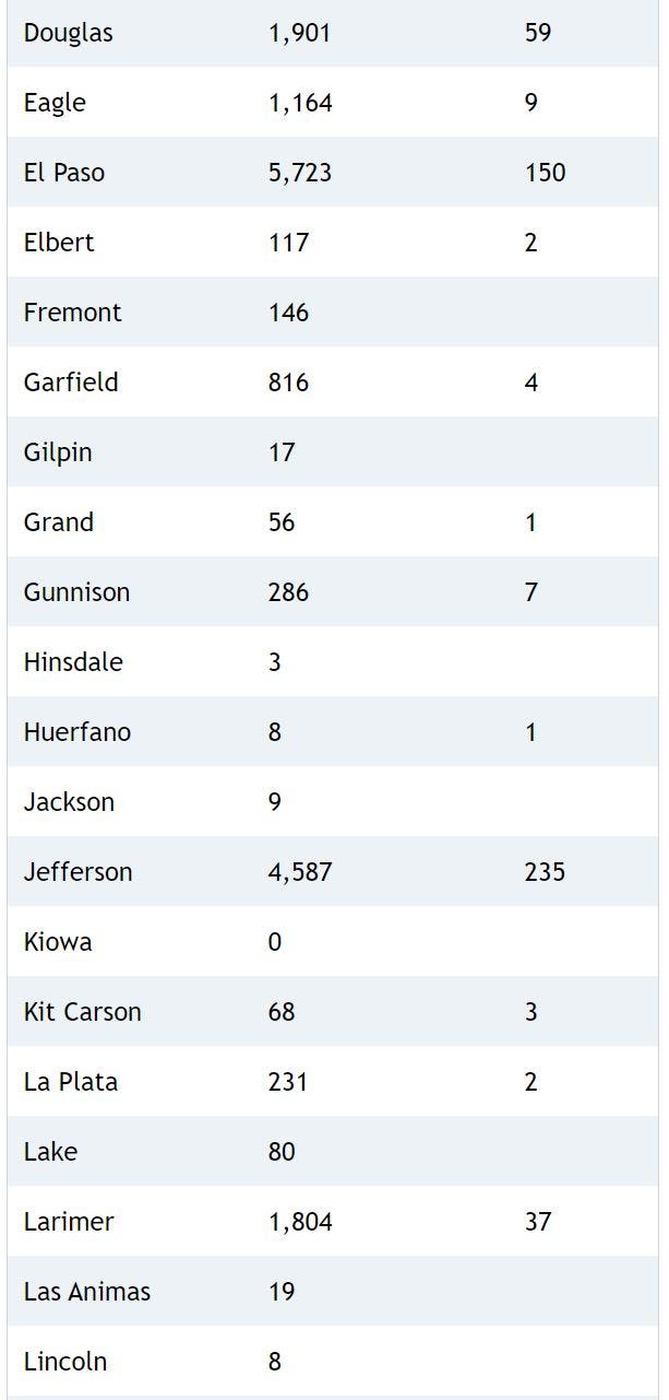 Here's a breakdown of cases and deaths in each county: