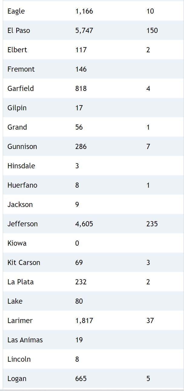 Here's a breakdown of cases and deaths in each county: