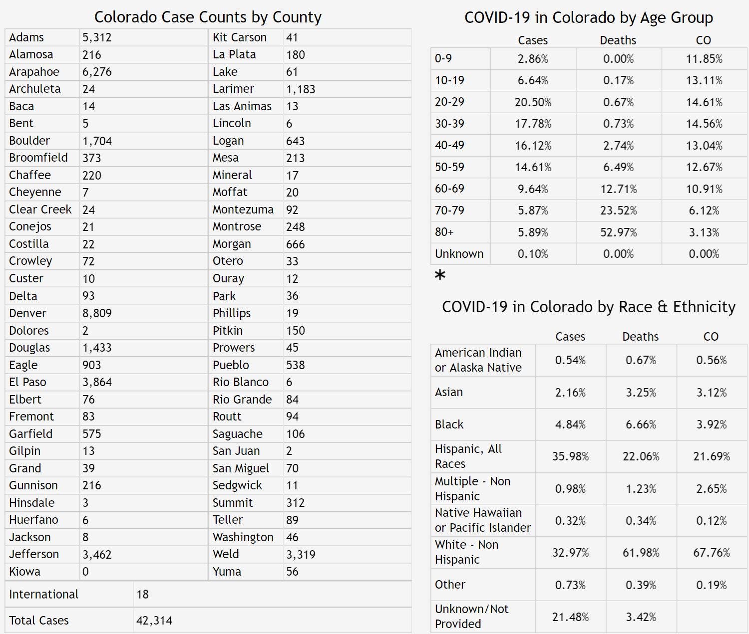 Over the past week, more than 3,500 new cases of the coronavirus have been reported in Colorado, according to public health data. As of Thursday, 42,314 people have been infected with the coronavirus in our state among 467,726 people who have been tested since the outbreak began, health officials confirmed. Around 6,149 people have been hospitalized, and the death toll has reached 1,645.