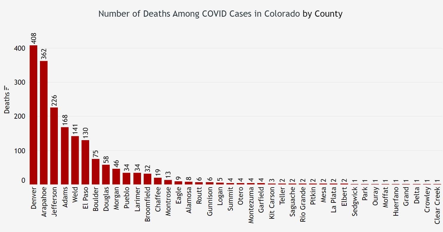 Over the past week, more than 3,800 new cases of the coronavirus have been reported in Colorado, according to public health data. As of Thursday, 46,204 people have been infected with the coronavirus in our state among 523,174 people who have been tested since the outbreak began, health officials confirmed. Around 6,413 people have been hospitalized, and the death toll has reached 1,691.