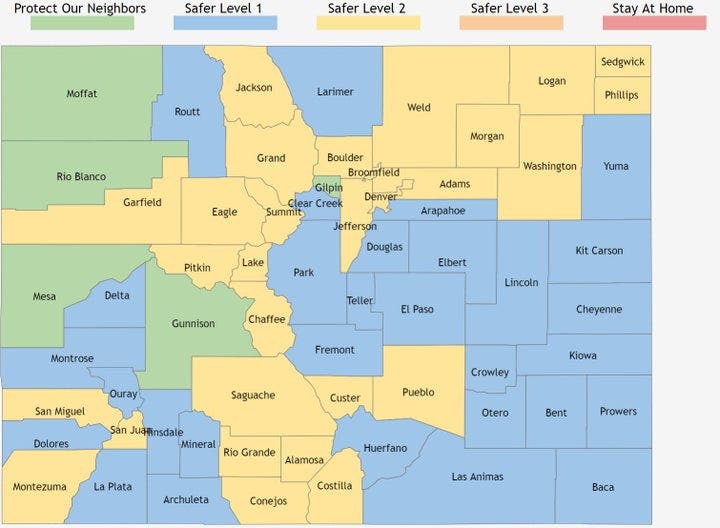 Denver, Jefferson, Arapahoe, Adams and Douglas counties could see a shift in the state's COVID-19 Dial if their numbers don't drop soon: