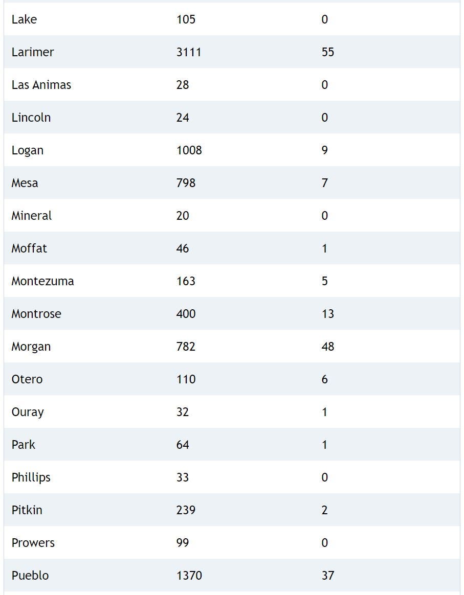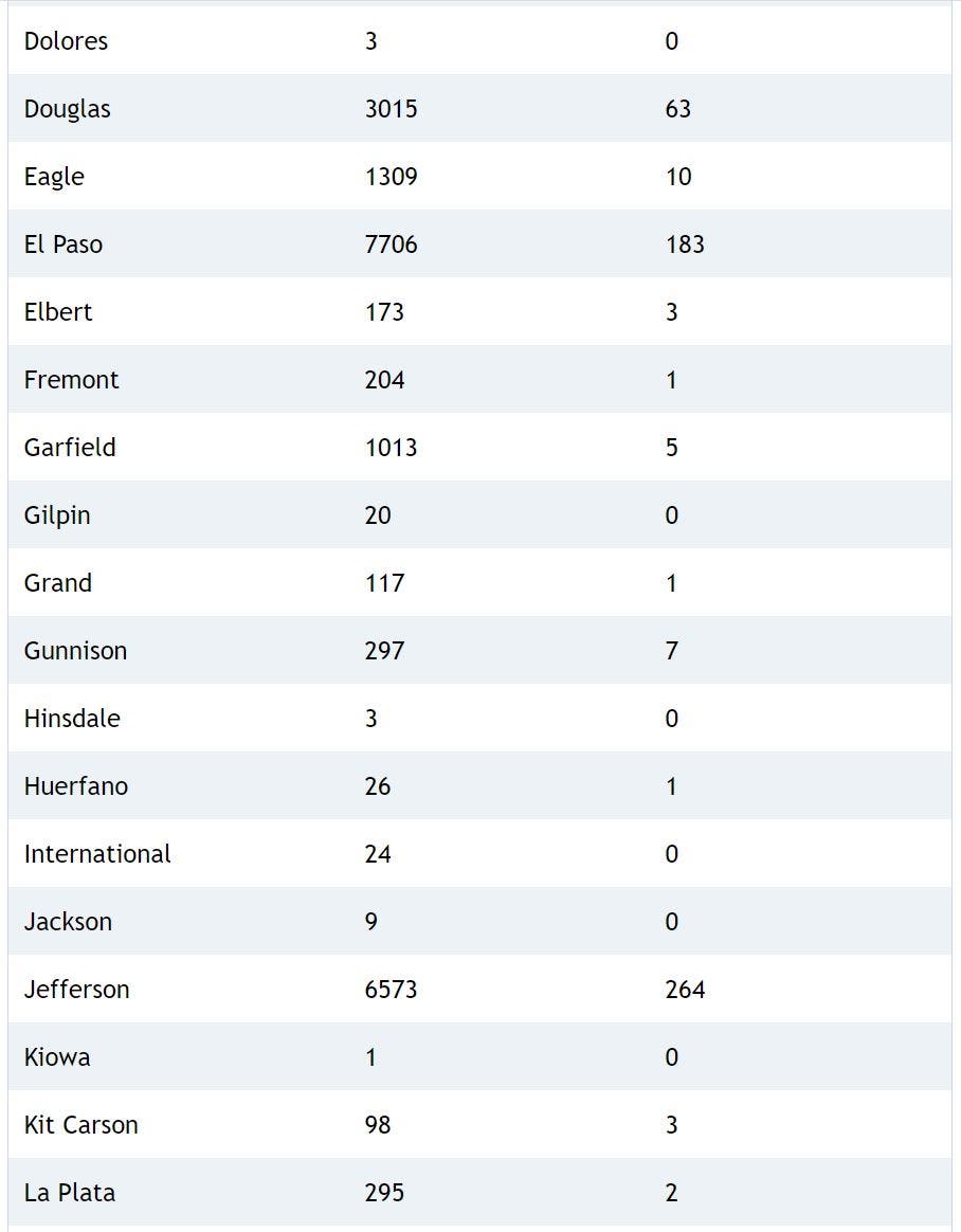 Here's a breakdown of cases and deaths in each county:
