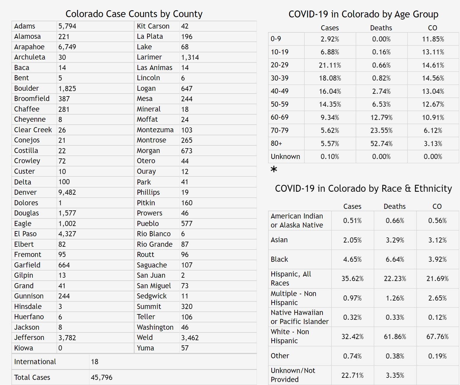 Over the past week, more than 3,500 new cases of the coronavirus have been reported in Colorado, according to public health data. As of Wednesday, 45,796 people have been infected with the coronavirus in our state among 516,502 people who have been tested since the outbreak began, health officials confirmed. Around 6,398 people have been hospitalized, and the death toll has reached 1,688.