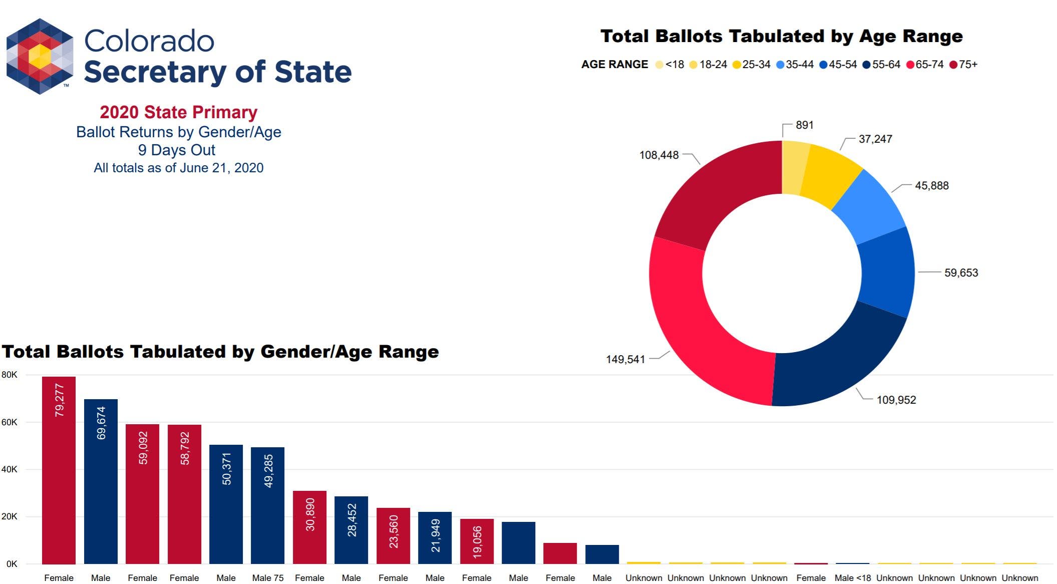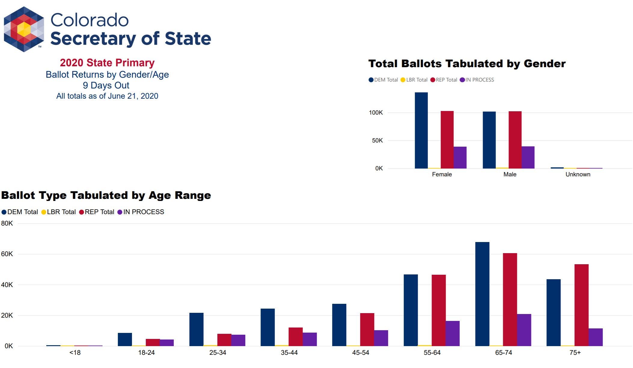 Here's the latest breakdown of ballots received, courtesy of the Colorado Secretary of State's Office: