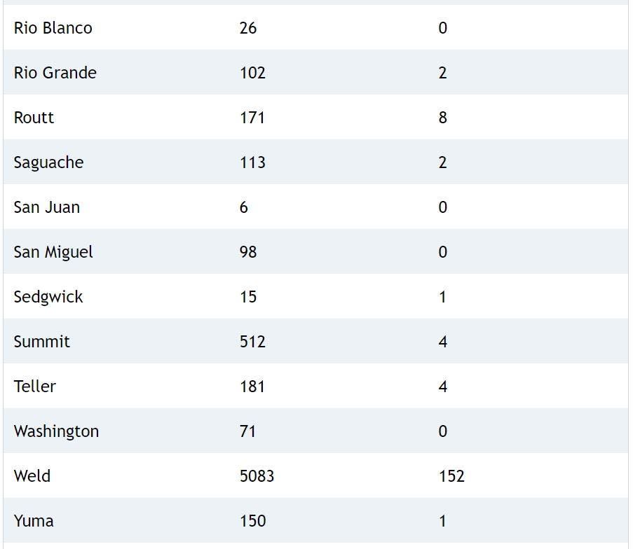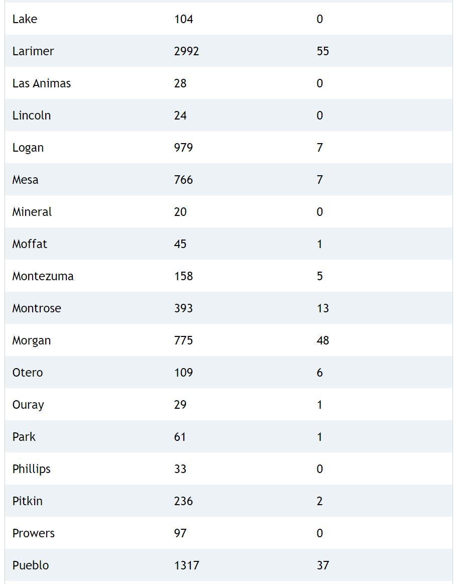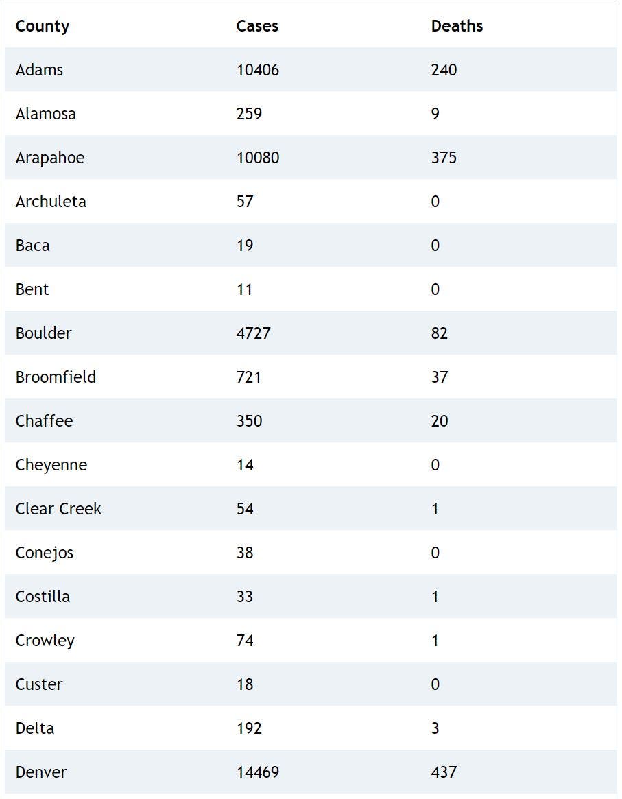 Here's a breakdown of cases and deaths in each Colorado county: