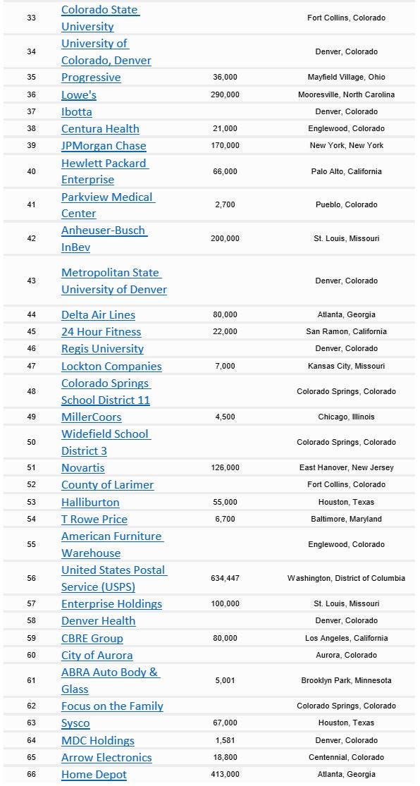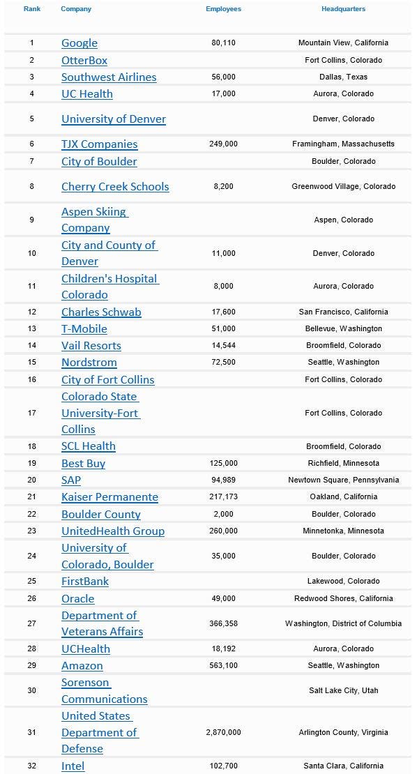 According to Forbes, the best Colorado employers are: