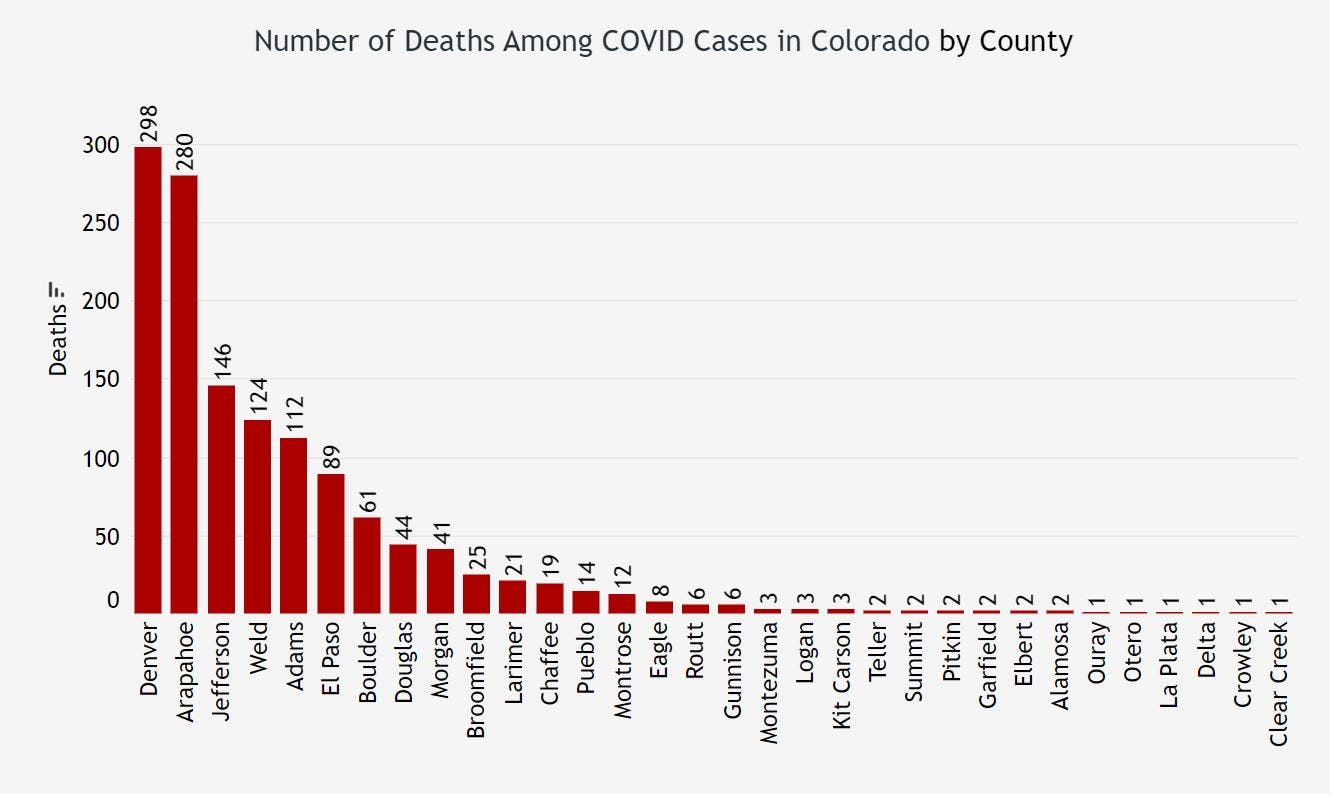 Here's the latest breakdown of cases and deaths in each Colorado county.