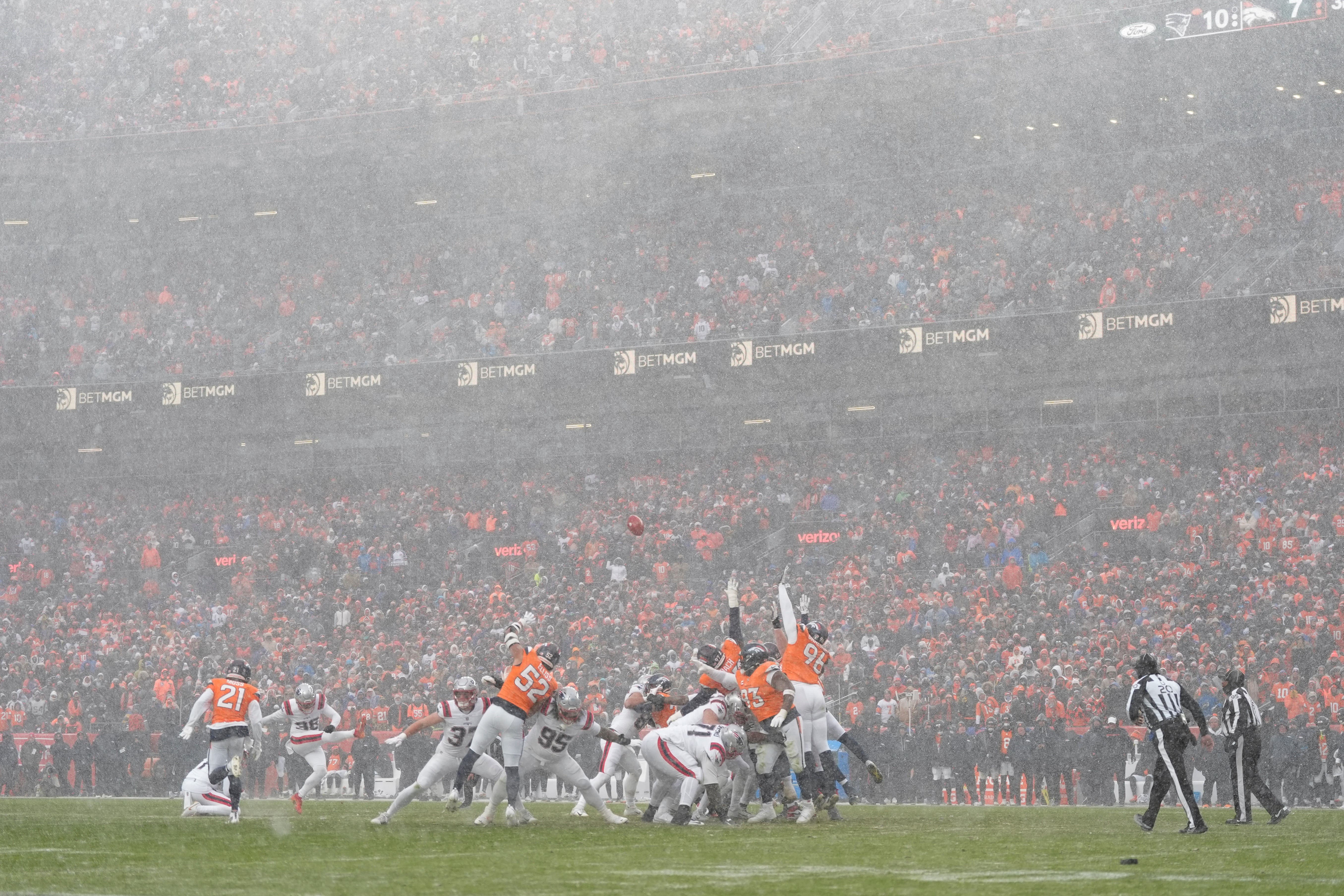 Denver Broncos quarterback Jarrett Stidham New England Patriots during the first the half of the AFC Championship NFL football game, Sunday, Jan. 25, 2026, in Denver. (AP Photo/John Locher)New England Patriots quarterback Drake Maye (10) hands off against the Denver Broncos during the second half of the AFC Championship NFL football game, Sunday, Jan. 25, 2026, in Denver. (AP Photo/David Zalubowski)New England Patriots cornerback Christian Gonzalez celebrate after an interception against the Denver Broncos during the second the half of the AFC Championship NFL football game, Sunday, Jan. 25, 2026, in Denver. (AP Photo/Garrett W. Elmwood)Denver Broncos kicker Wil Lutz (3) misses a field goal attempt against the New England Patriots during the second half of the AFC Championship NFL football game, Sunday, Jan. 25, 2026, in Denver. (AP Photo/David Zalubowski)New England Patriots kicker Andy Borregales (36) misses a field goal against the Denver Broncos during the second half of the AFC Championship NFL football game, Sunday, Jan. 25, 2026, in Denver. (AP Photo/Ashley Landis)New England Patriots kicker Andy Borregales kicks a field goal against the Denver Broncos during the second half of the AFC Championship NFL football game, Sunday, Jan. 25, 2026, in Denver. (AP Photo/Ashley Landis)A Denver Broncos fan watches during the second half of the AFC Championship NFL football game against the New England Patriots, Sunday, Jan. 25, 2026, in Denver. (AP Photo/Ashley Landis)Denver Broncos quarterback Jarrett Stidham (8) runs against the New England Patriots during the second half of the AFC Championship NFL football game, Sunday, Jan. 25, 2026, in Denver. (AP Photo/Ashley Landis)Denver Broncos quarterback Jarrett Stidham leaves the field after the AFC Championship NFL football game between the Denver Broncos and the New England Patriots, Sunday, Jan. 25, 2026, in Denver. (AP Photo/John Locher)Denver Broncos head coach Sean Payton and New England Patriots head coach Mike Vrabel meet after the AFC Championship NFL football game between the Denver Broncos and the New England Patriots, Sunday, Jan. 25, 2026, in Denver. (AP Photo/John Locher)New England Patriots head coach Mike Vrabel celebrates with the trophy after the AFC Championship NFL football game between the Denver Broncos and the New England Patriots, Sunday, Jan. 25, 2026, in Denver. (AP Photo/John Locher)New England Patriots offensive tackle Morgan Moses (76) and tight end Hunter Henry celebrate after the AFC Championship NFL football game against the Denver Broncos, Sunday, Jan. 25, 2026, in Denver. (AP Photo/Ashley Landis)New England Patriots head coach Mike Vrabel speaks with quarterback Drake Maye after the AFC Championship NFL football game against the Denver Broncos, Sunday, Jan. 25, 2026, in Denver. (AP Photo/Ashley Landis)Denver Broncos safety Talanoa Hufanga, left, greets New England Patriots quarterback Drake Maye after the AFC Championship NFL football game, Sunday, Jan. 25, 2026, in Denver. (AP Photo/Ashley Landis)Denver Broncos head coach Sean Payton speaks during a news conference after the AFC Championship NFL football game between the Denver Broncos and the New England Patriots, Sunday, Jan. 25, 2026, in Denver. (AP Photo/Garrett W. Ellwood)