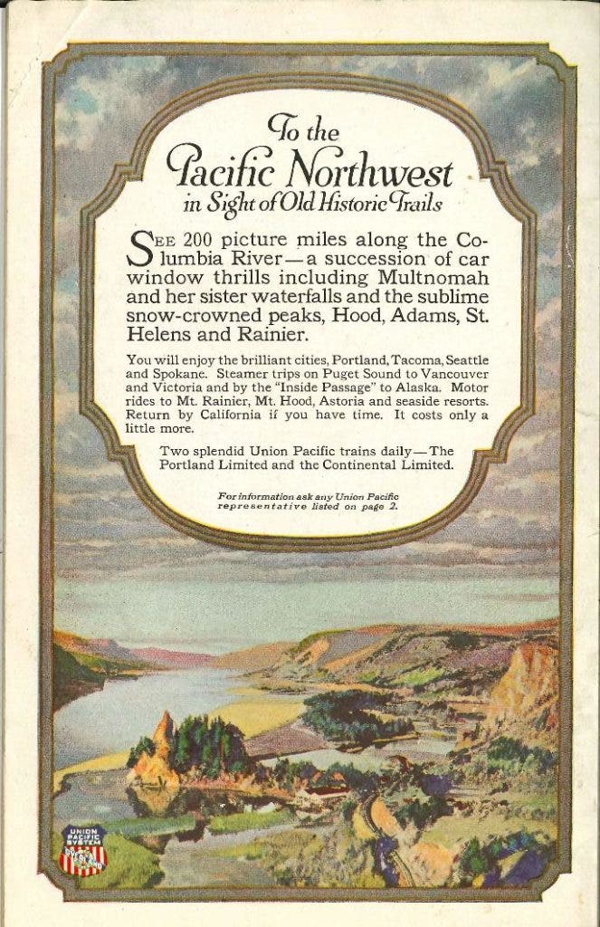 Figure 2 Union Pacific booklet from 1924, back cover. Colorado Railroad Museum collection.