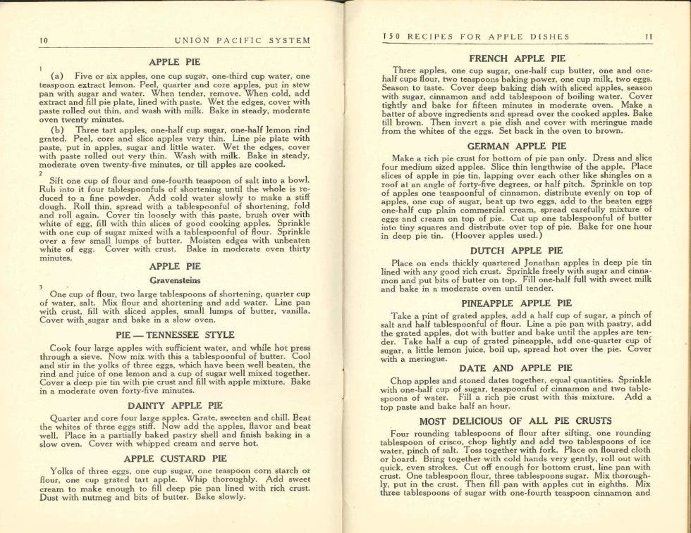 Figure 3 Apple pie recipes from “150 Recipes for Apple Dishes”. Colorado Railroad Museum collection.