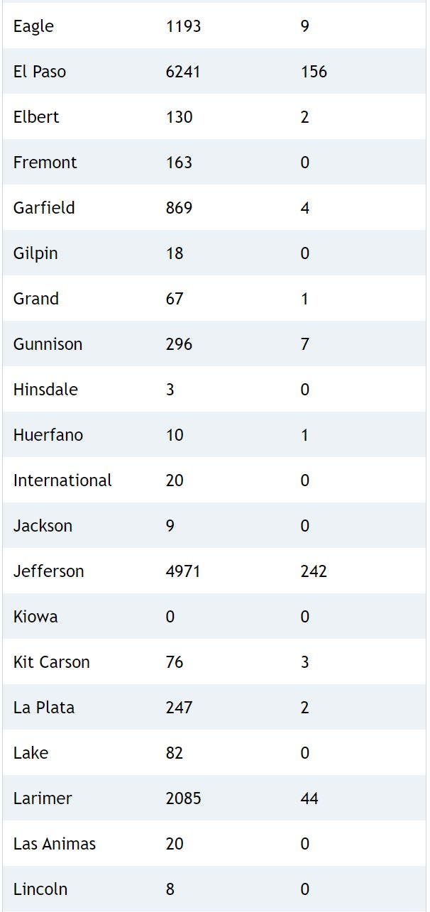Around 4,555 people have recovered in Jeffco and 19 people were hospitalized as of Wednesday.