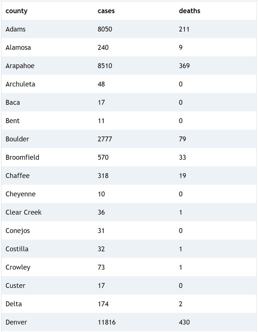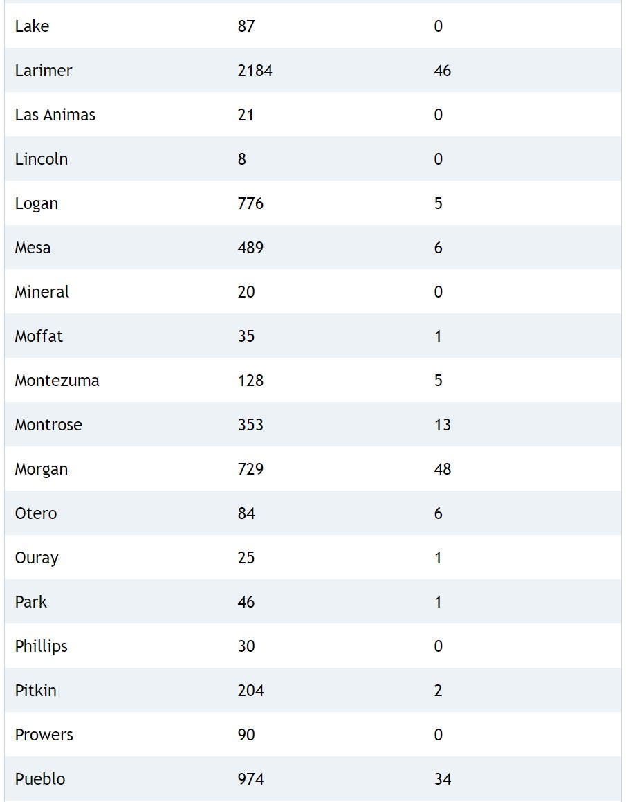 As of Monday, 61,699 people have been infected with the coronavirus in Colorado among 786,511 people who have been tested since the outbreak began, health officials confirmed. Around 7,240 people have been hospitalized, and the death toll has reached 1,894 after 28 people died over the past week.