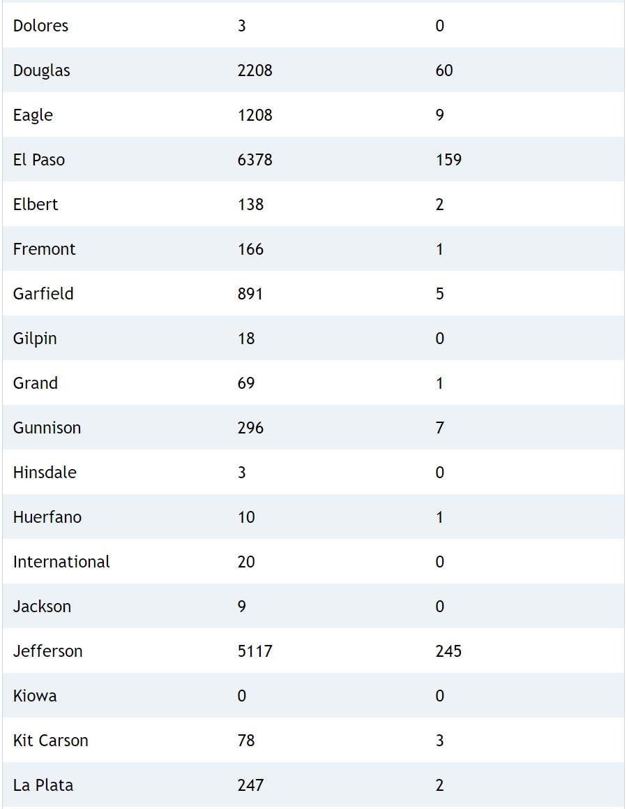 | Arvada (Jeffco count only) | 57 | 990 | 8.44 |