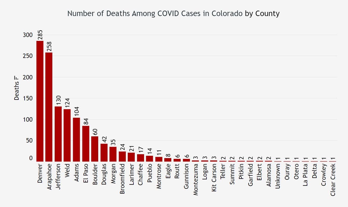 As of Tuesday afternoon, 22,482 people have been infected with the new coronavirus in Colorado among 131,837 people who have been tested since the outbreak began, health officials confirmed. Around 3,955 people have been hospitalized, and the death toll among people who tested positive for COVID-19 has reached 1,257.