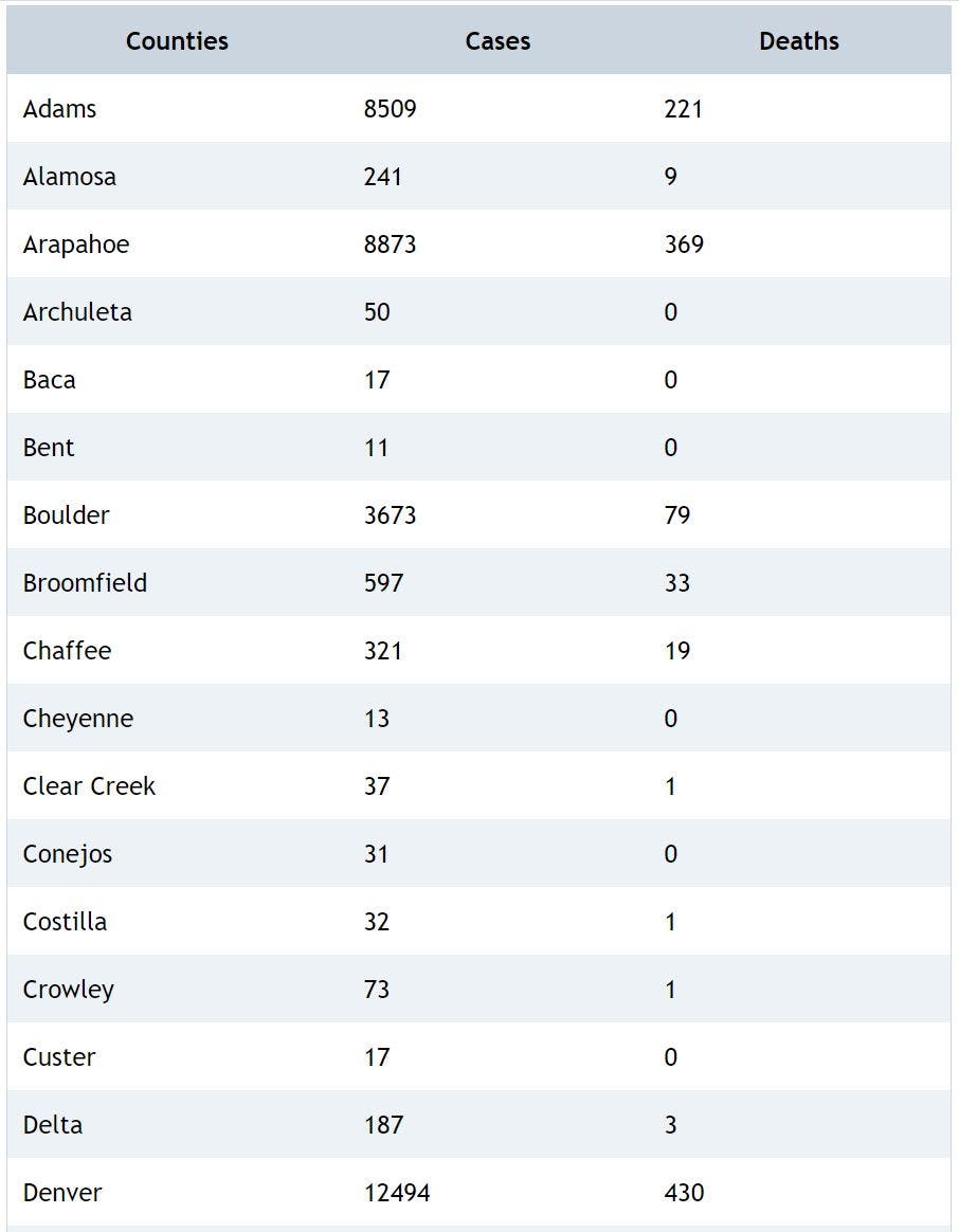 As of Monday, 65,399 people have been infected with the coronavirus in Colorado among 834,277 people who have been tested since the outbreak began, health officials confirmed. Around 7,373 people have been hospitalized, and the death toll has reached 1,914 after 20 people died over the past week.