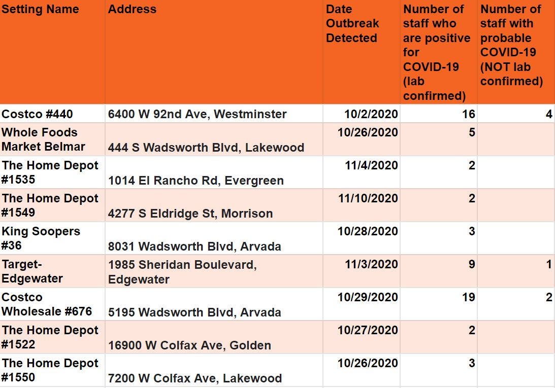 Every Wednesday, the Colorado Department of Public Health and Environment updates its list of outbreaks in each county. Some outbreaks have lasted more than a month since they were first detected.