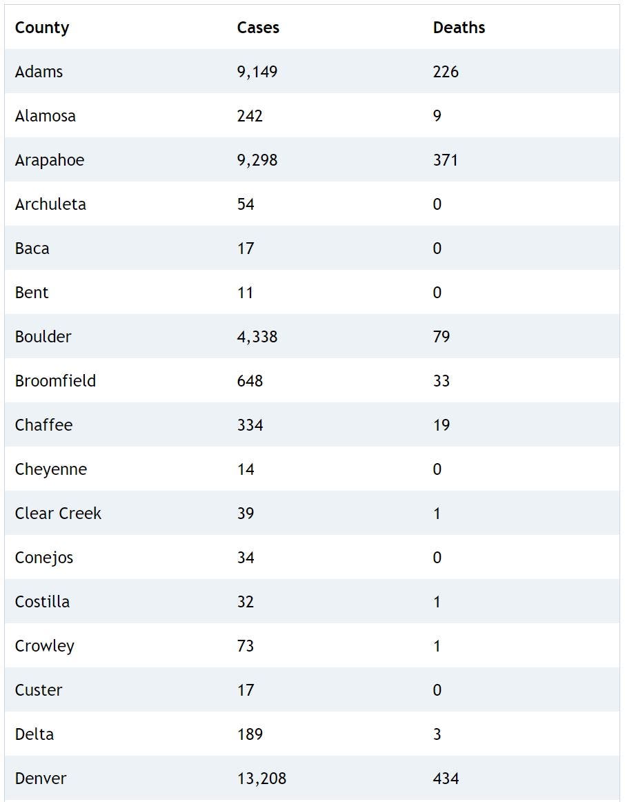 As of Monday, 69,490 people have been infected with the coronavirus in Colorado among 894,996 people who have been tested since the outbreak began, health officials confirmed. Around 7,530 people have been hospitalized, and the death toll has reached 1,945 after 31 people died over the past week.