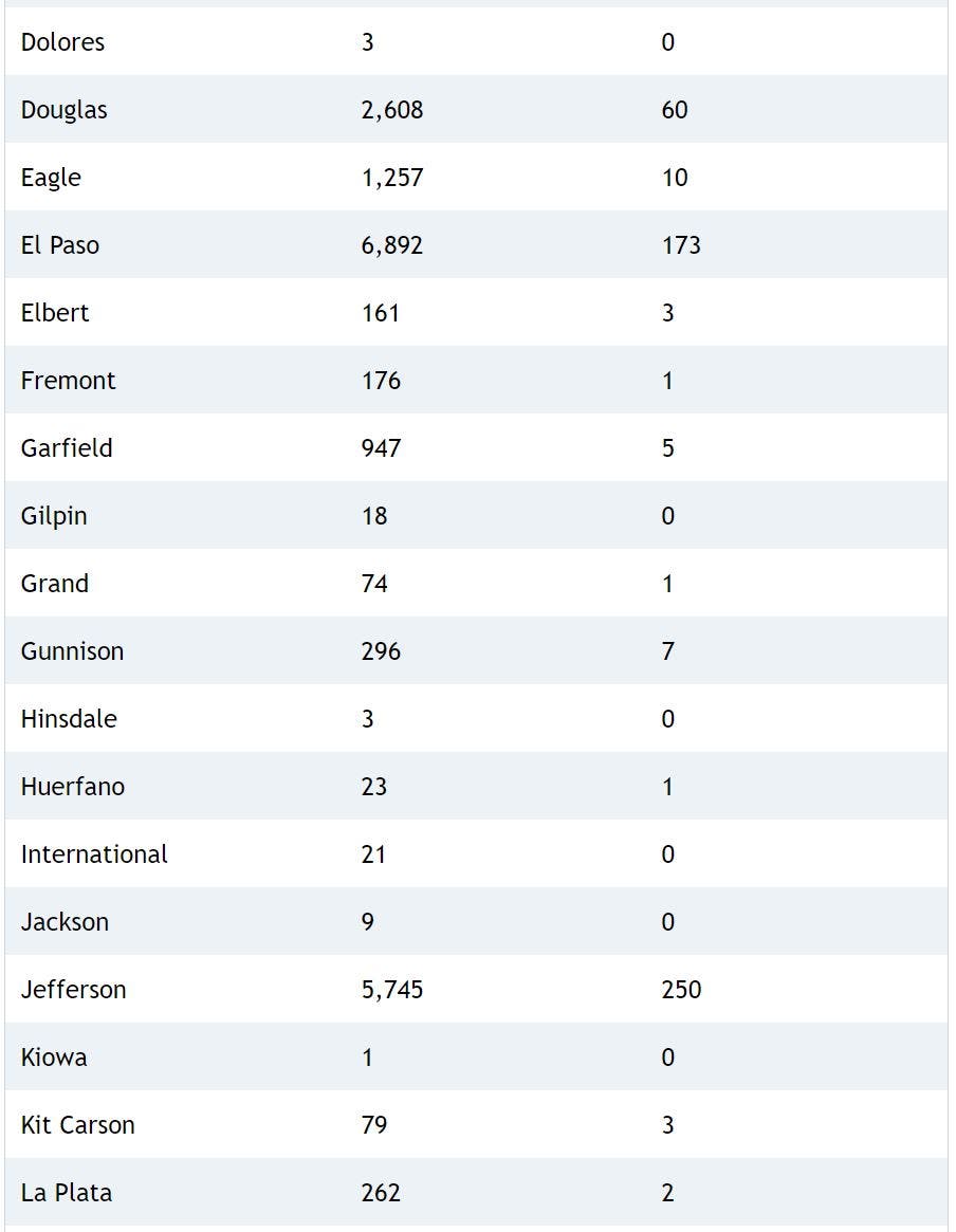 | Arvada (Jeffco count only) | 118 | 1,110 | 9.46 |
