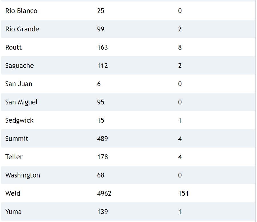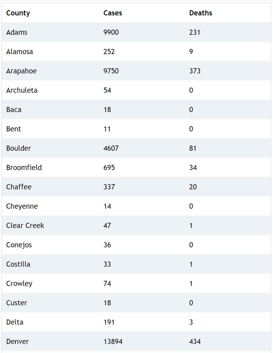 As of Monday, 73,537 people have been infected with the coronavirus in Colorado among 957,533 people who have been tested since the outbreak began, health officials confirmed. Around 7,693 people have been hospitalized, and the death toll has reached 1,968 after 23 people died over the past week.