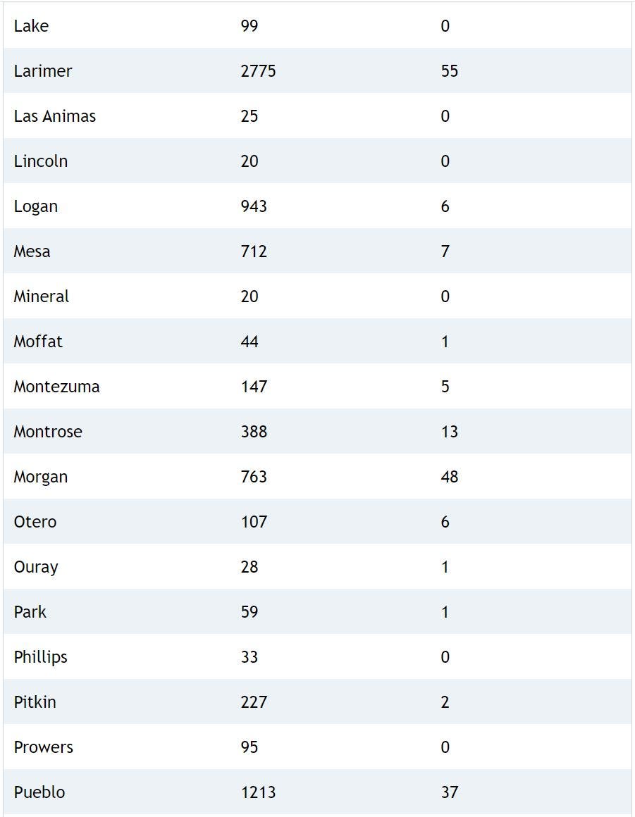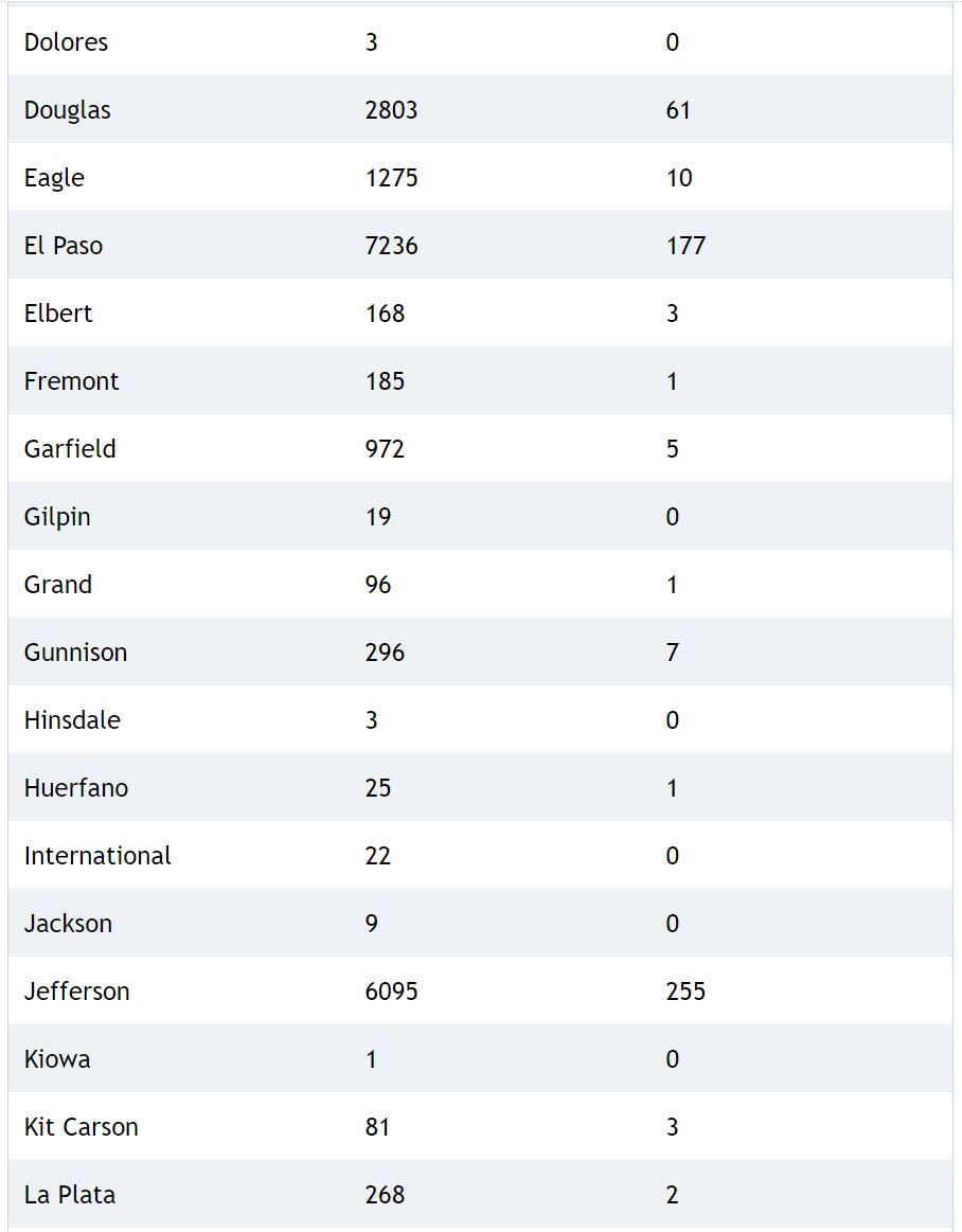 | Arvada (Jeffco count only) | 116 | 1,171 | 9.98 |