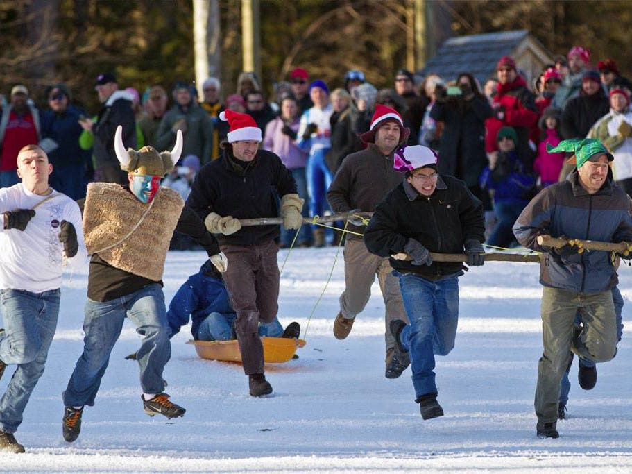 Part of Salisbury Winter Sports Association’s Jumpfest February 11-13 is the Human Dog Sled Race. This unique race is being held on the evening of Friday, February 11th. This is the chance for you and five of your friends to get together and be creative with the added bonus of entertaining others. It is easy and fun to do and worth at least a year of bragging rights and Instagram photos!