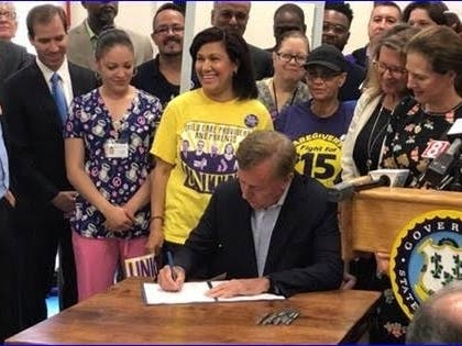 Lamont Signs $15 Minimum Wage Bill Into Law