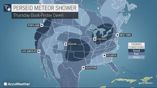 Meanwhile, skywatchers across the Intermountain West, Southeast and the Upper Midwest hoping to witness a shooting star or two might step outside and see only clouds, according to AccuWeather.