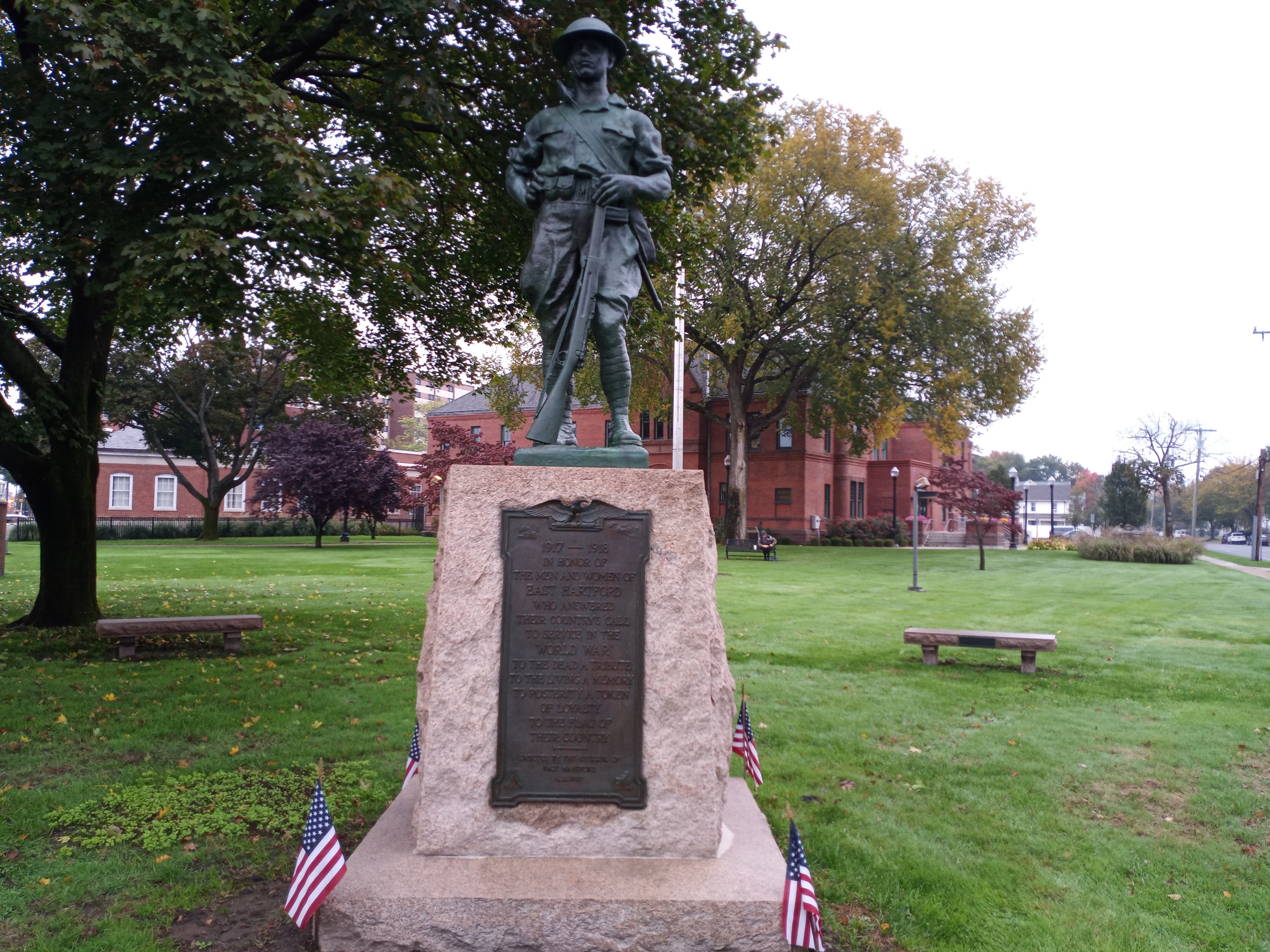 The statue was put in place in 1929, "by the citizens of East Hartford," and underwent restoration work five years ago to commemorate the war's 100th anniversary. The statue was designed to remember those who fought and died and those who survived.