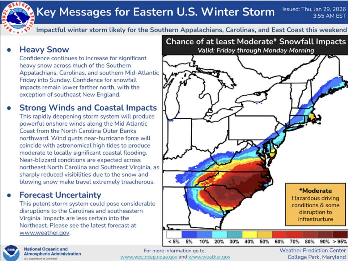 “The track of the storm appears to favor a brushing of Southern New England, to the point (east/southeast Connecticut) could receive measurable snow,” WFSB reports. “A shift farther east would lead to a complete miss for CT. Conversely, a shift west = greater impact, on multiple fronts.”