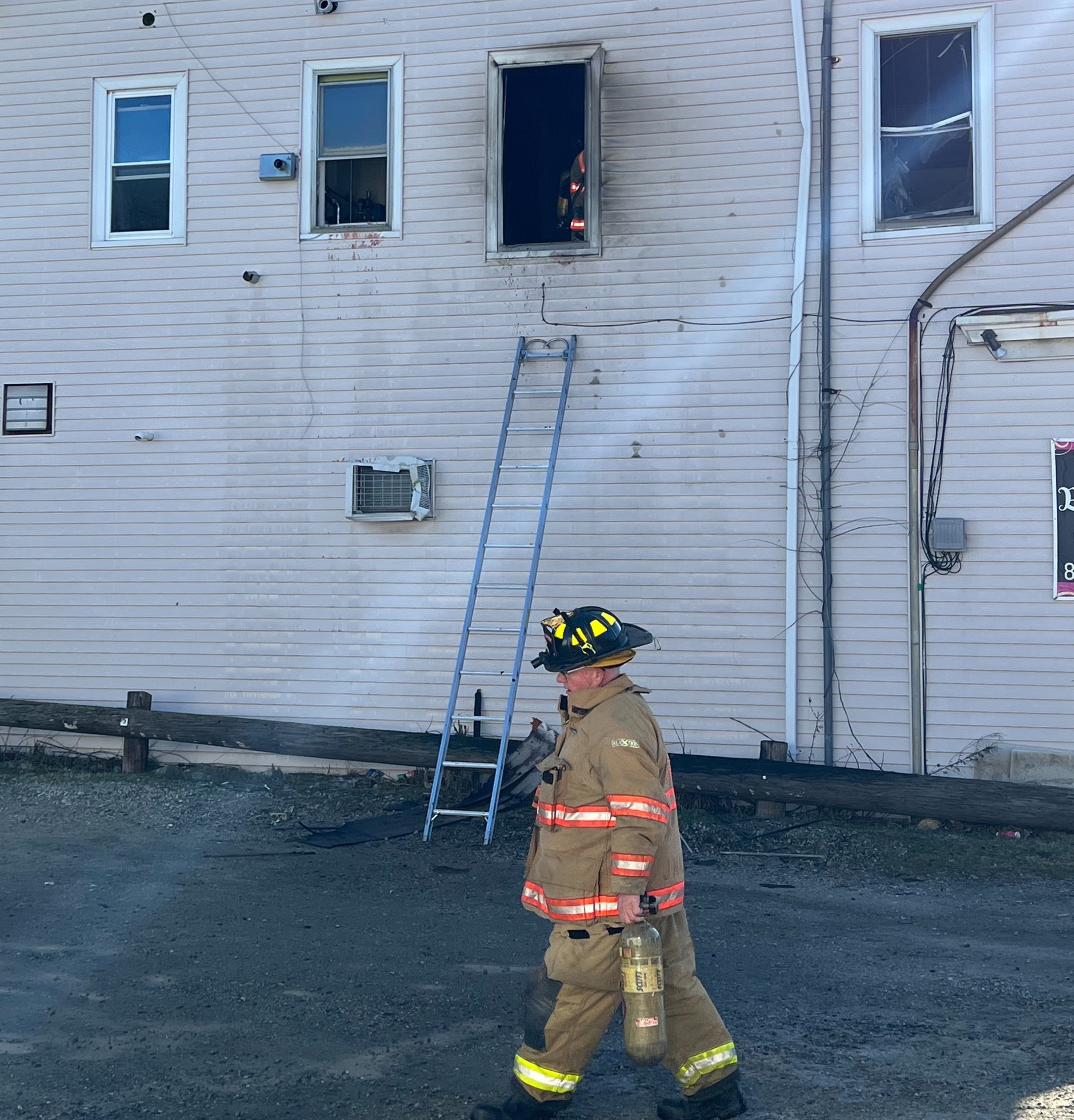"I'd pulled aside to let the cop pass me when I saw the smoke coming out the front of the building. I pulled over and let (police) know I was a volunteer firefighter when I noticed the guy hanging out the window. I suggested to police that I back the truck up," he said, adding it would then be a "just a four-foot drop."