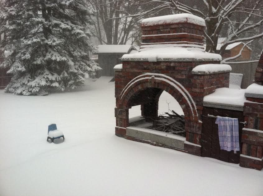 Snow accumulates 12-18 inches here and snow will fall heavily through the afternoon hours before ending toward evening.Traveling will be hazardous/dangerous due to the snow covered roads and poor visibilities, the weather service states. Intense snowfall rates of 2-3 inches per hour are possible at times, the weather service states. A Winter Storm Warning is in effect until the evening.