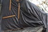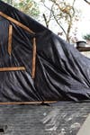 The tree has been removed from the house and a tarp is covering the corner of the house that a tree crashed through on Monday night during Hurricane Sandy.