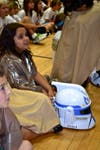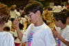 Assistant Principal Jess Giannini unwrapped boxes within boxes to reveal the gift all students went home with: a Pine Grove key chain.